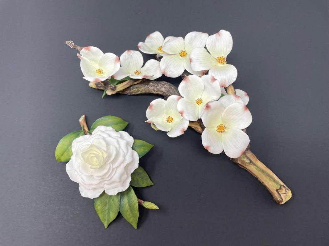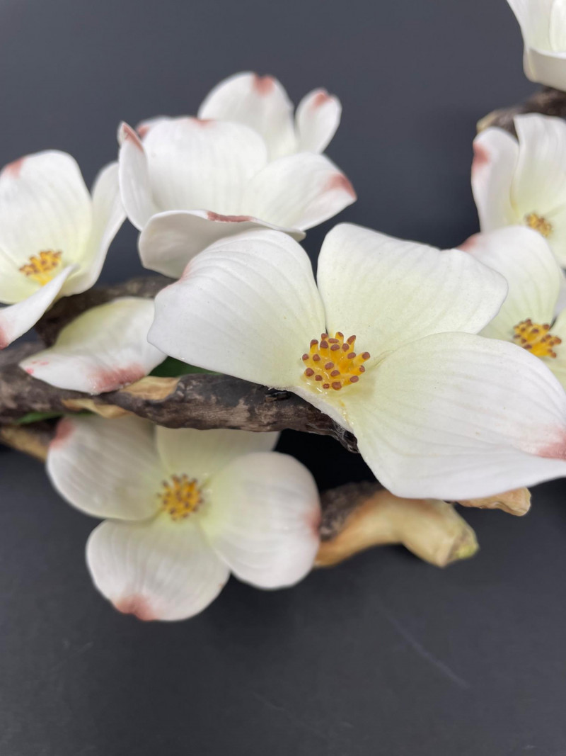 Boehm porcelain flower sculptures! Here’s what stands out: Boehm porcelain pieces are collectible and often hand-painted, known for their lifelike botanical accuracy. Depending on condition and rarity, they can be quite valuable. Note: One petal broken off Dog wood, (see picture)