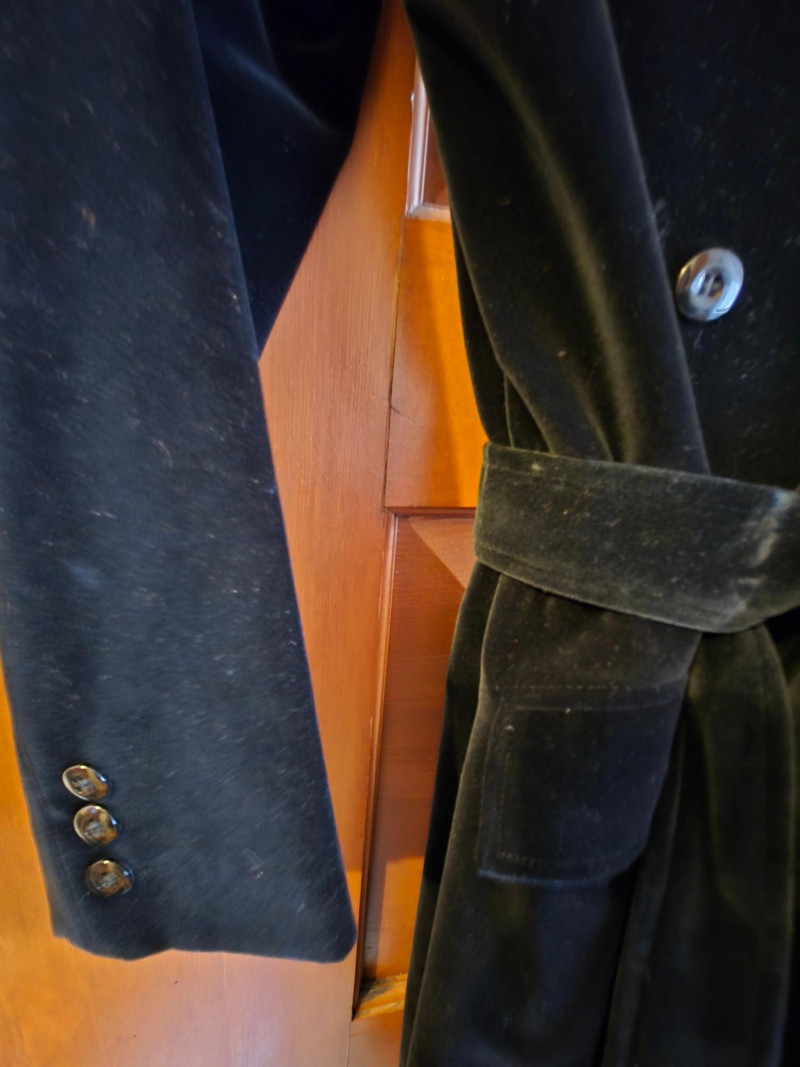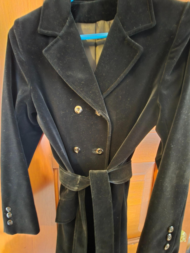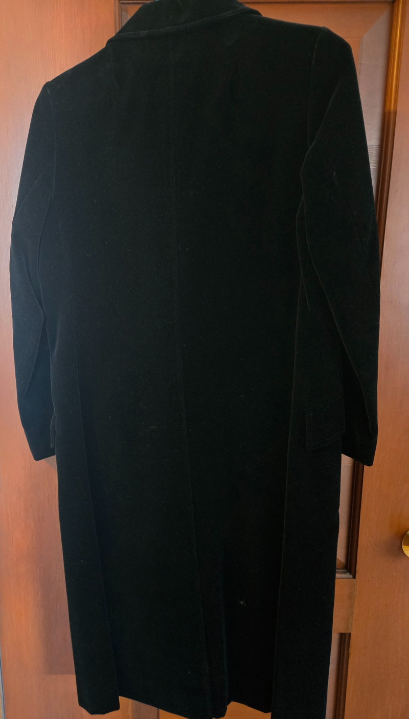 Vintage black velvet trench coat by Drizzle This piece has a luxurious, elegant look
