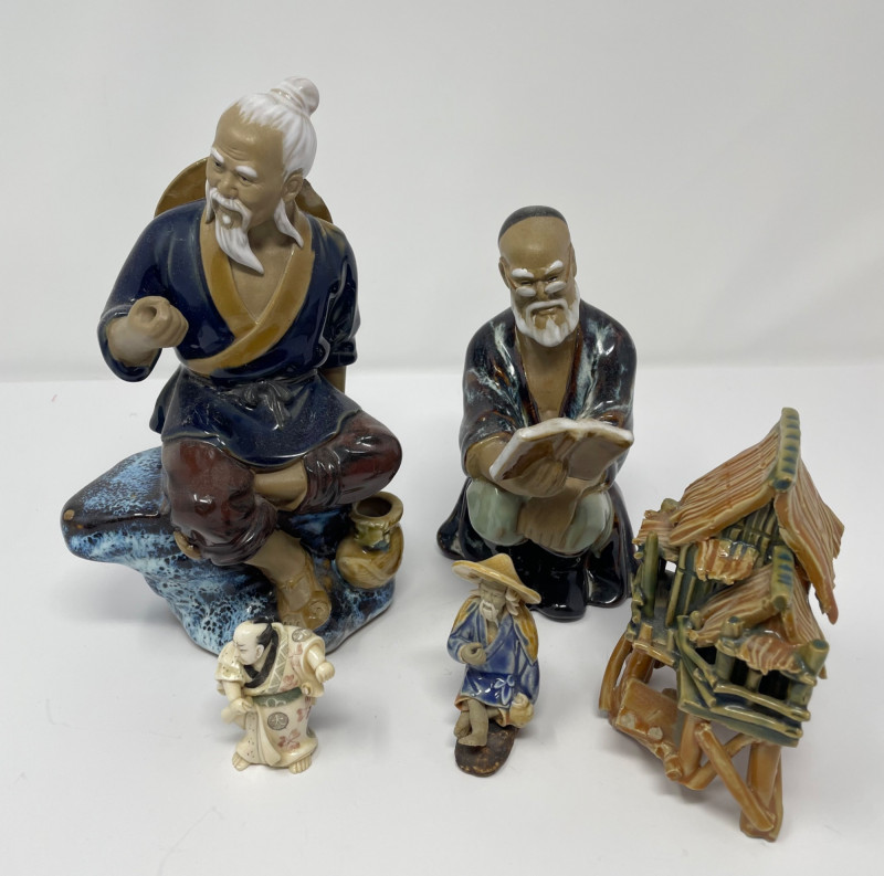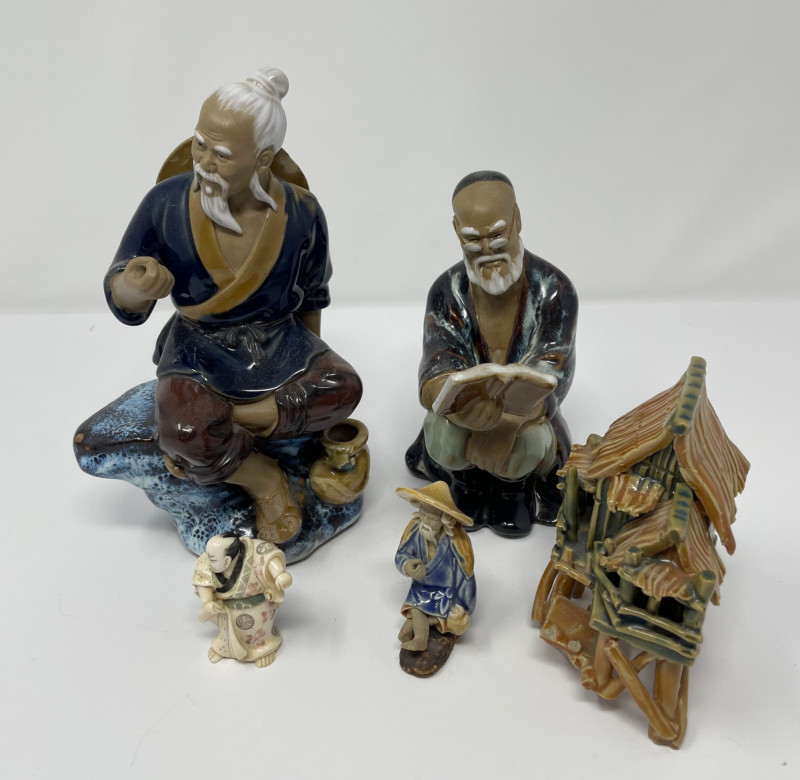 Collection of Asian ceramic figurines and decorative pieces. Figurine sizes 2” to 7 1/2”Description