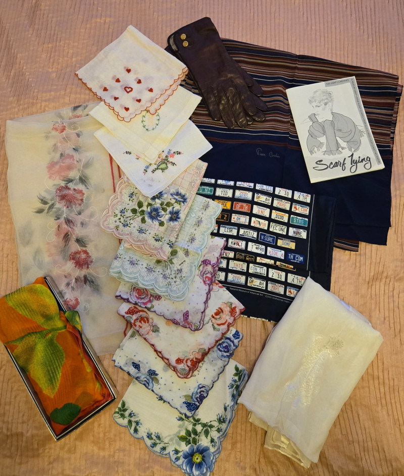 Lot # 118 - Vintage Ladies Accessories, 5 Scarves w/Scarf Tying Booklet, 9 Hanky's
