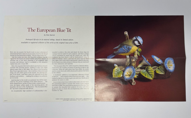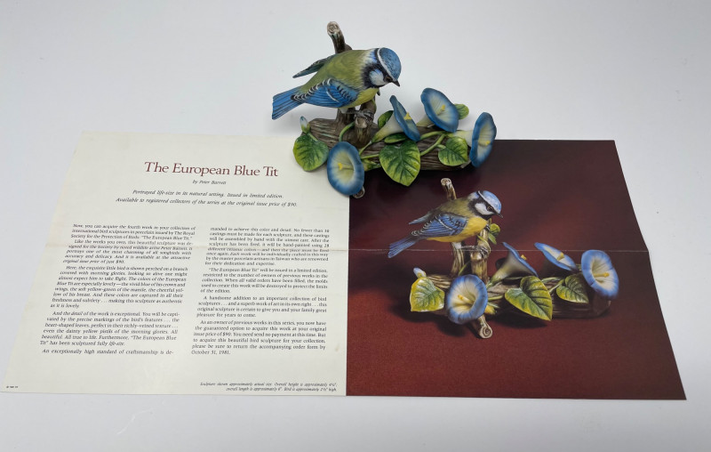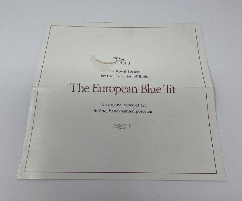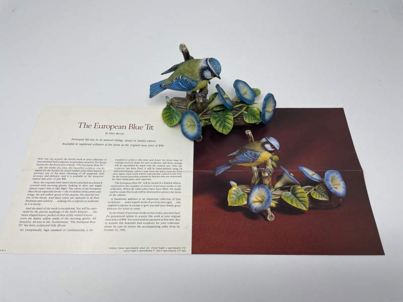 Royal Society for the Protection of Birds (RSPB) porcelain figurine titled “The European Blue Tit”, and it’s a stunning collectible piece. Here’s a detailed description you can use: Celebrate the beauty of nature with this exquisite porcelain sculpture: Size 7” x 5”