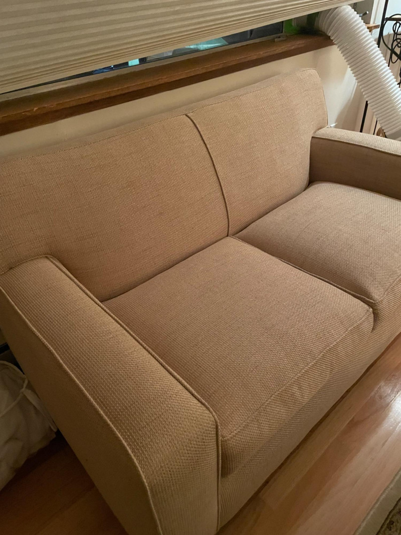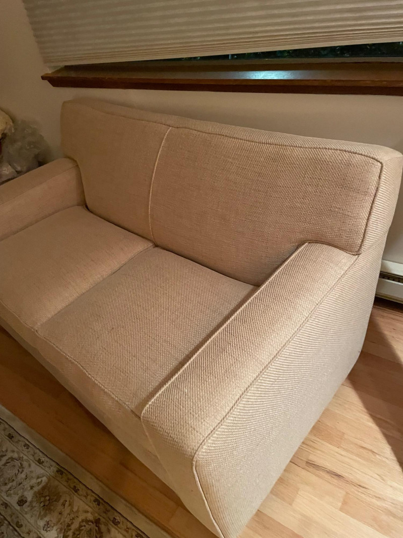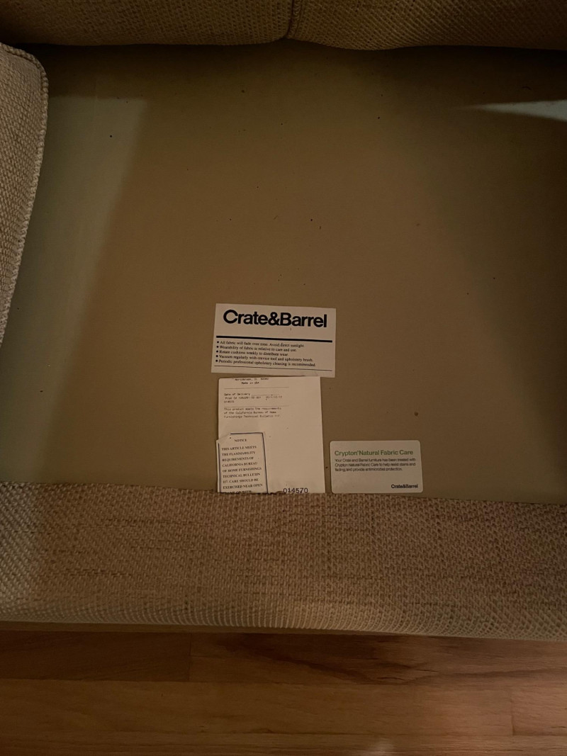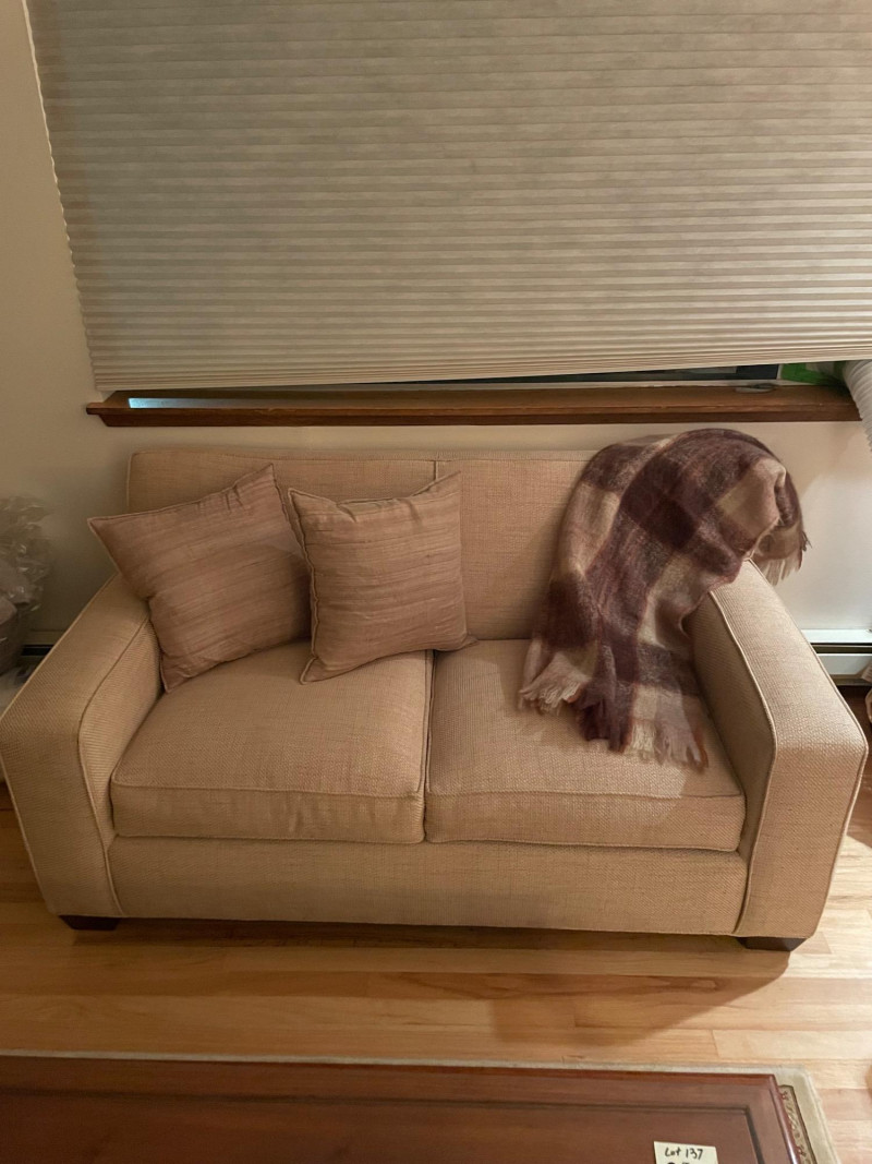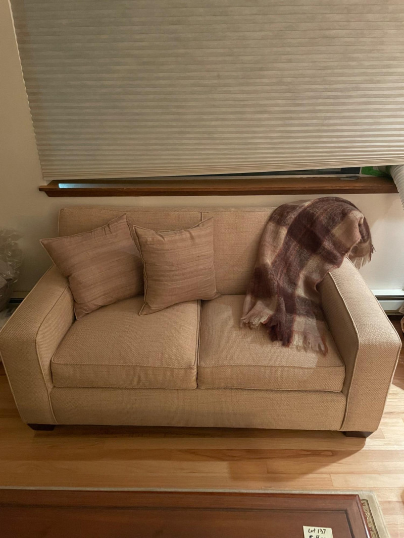 Crate & Barrel loveseat paired with a Scotland wool blanket. Here are the details: ON THIS PIECE, PLEASE BRING STRONG HELP, THERE WILL BE NO ONE HERE TO HELP YOU.Loveseat Features