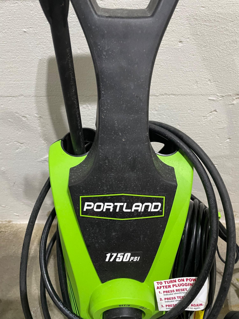 Portland 1750 PSI Pressure Washer, a compact electric model commonly used for light to medium-duty cleaning tasks. Like New Condition