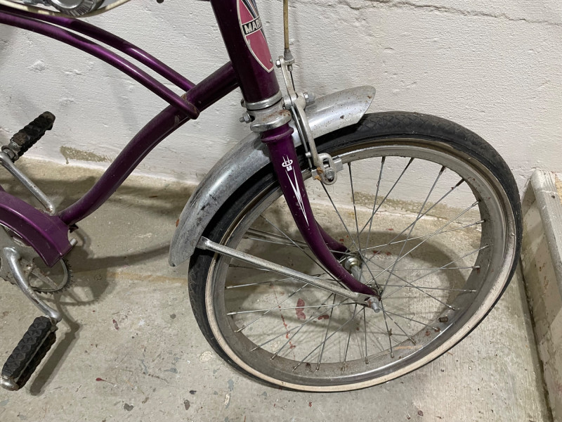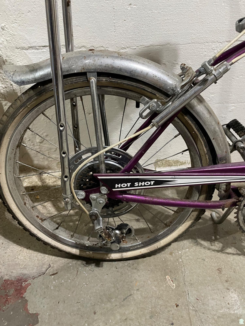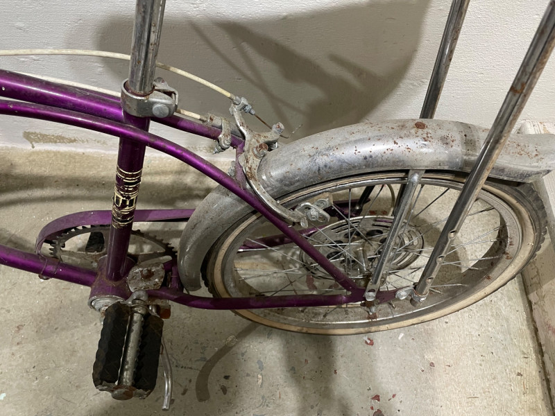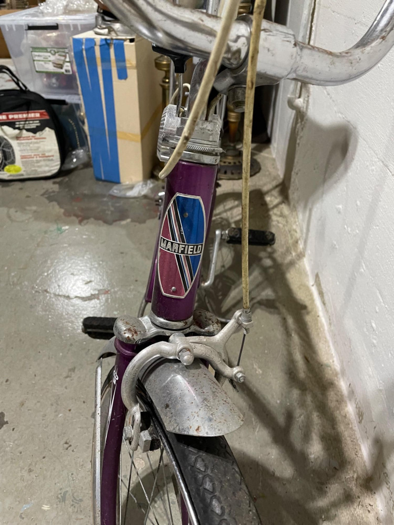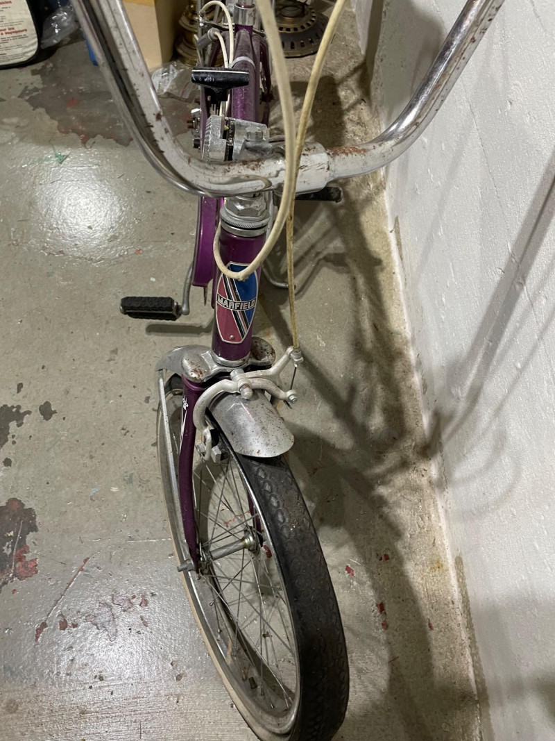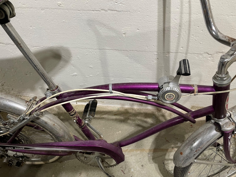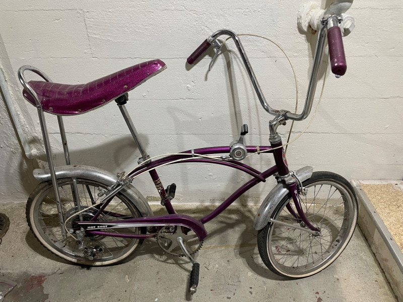 Bike in As Is Condition. Tires flat, see pictures of condition. Marfield Hot Shot 10-Speed Bicycle, which appears to be a vintage model from the 1970s or early 1980s. This style of bike is often referred to as a muscle bike or banana seat bike, popular in the 1960s–70s. Collectors value these for their retro design and nostalgic appeal.