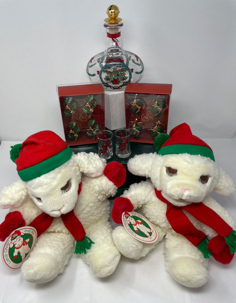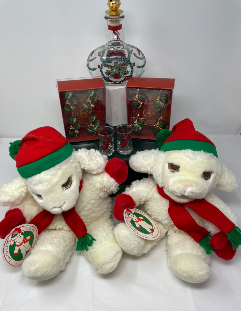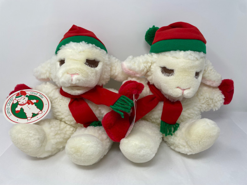 Christmas-themed collection featuring Lamb Chop puppets and holiday décor. Two Lamb Chop Plush Puppets Holiday Glassware & Décor