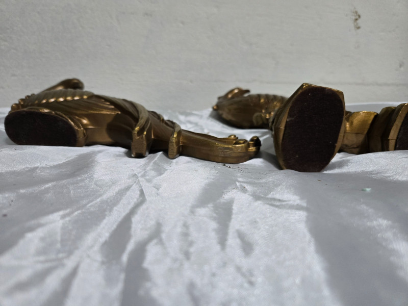 Pair of mid-century decorative sculptures crafted from gold-toned resin.