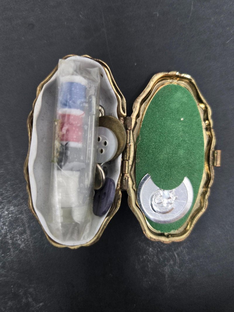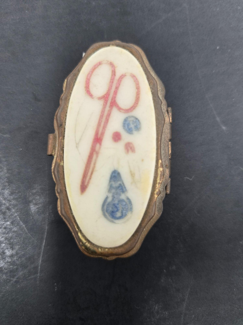 - A tiny oval cameo-style piece, possibly hand-painted.