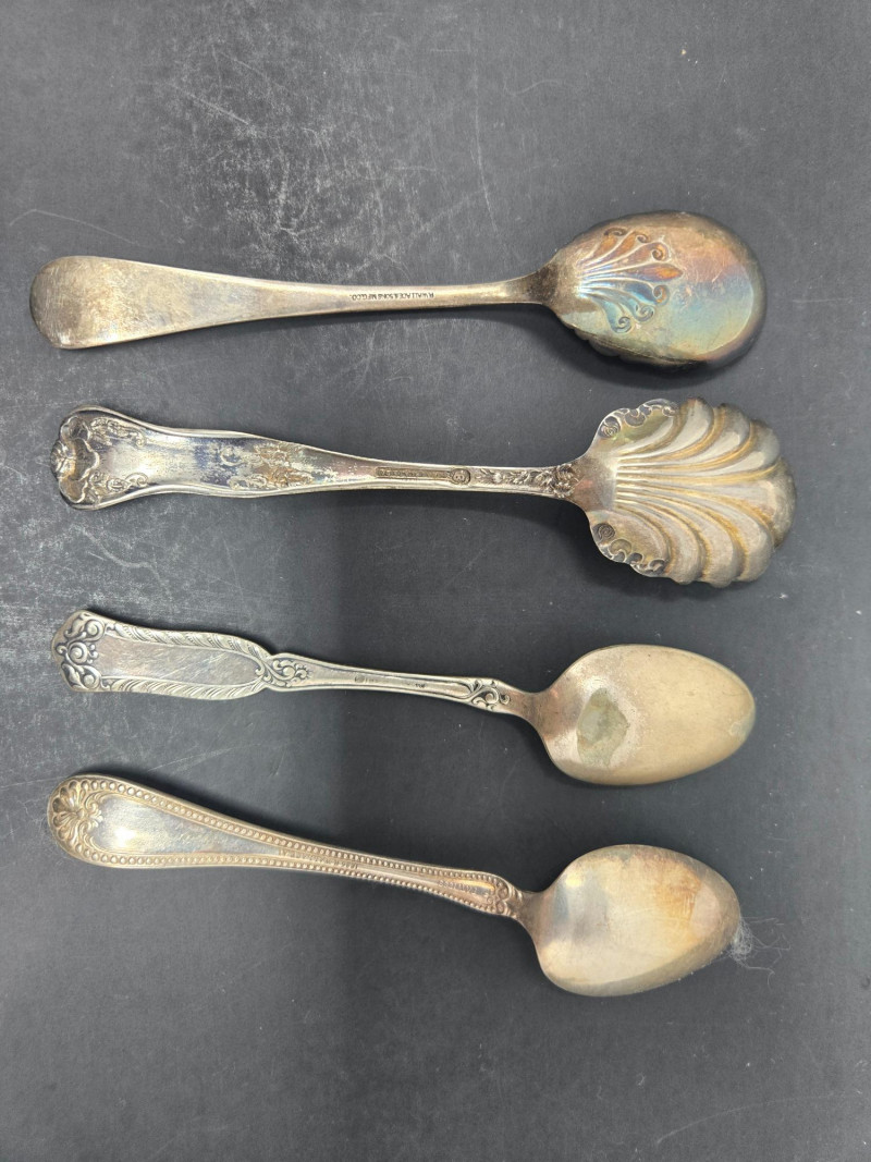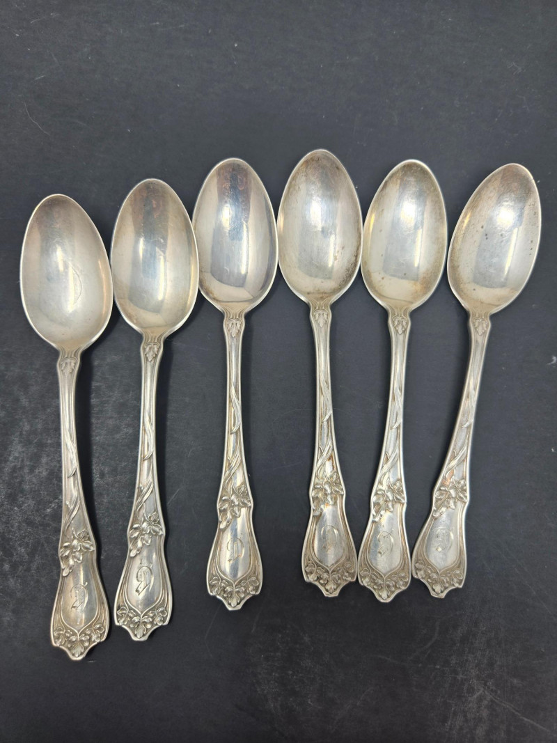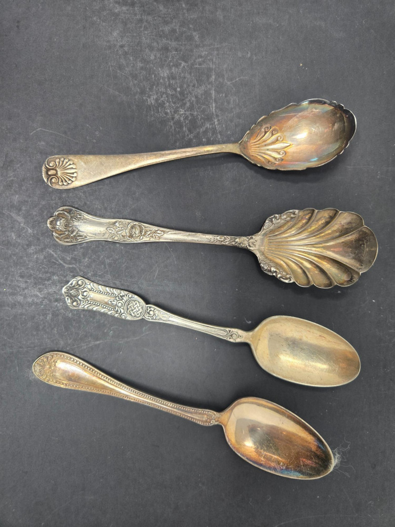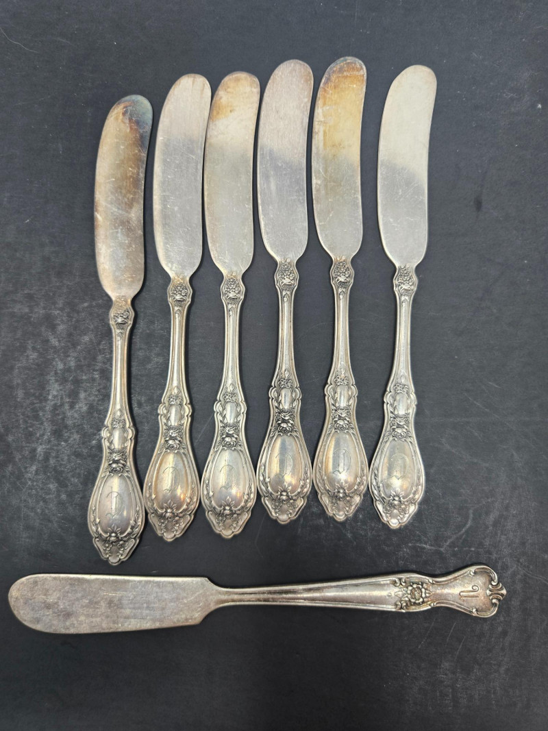 Collection of ornate stainless-steel flatware, likely vintage or antique.Overall Description