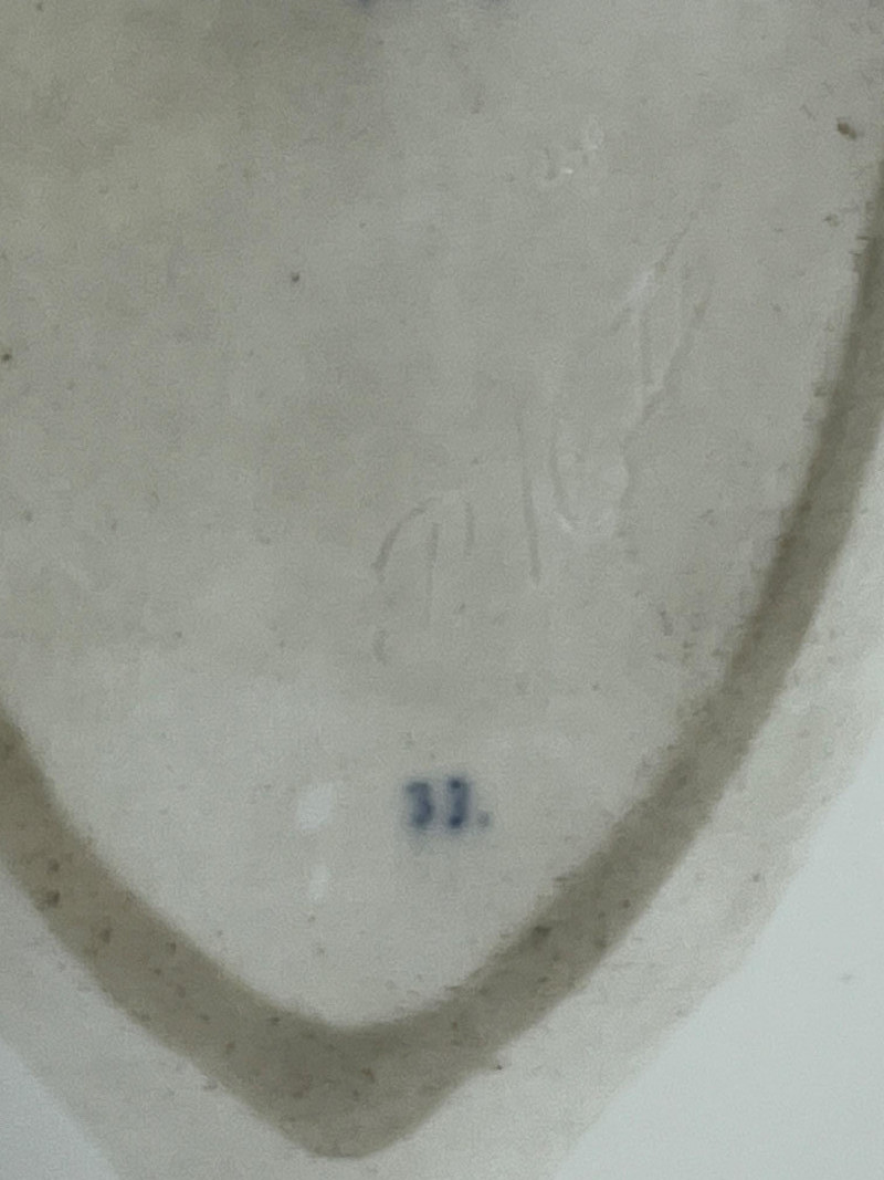 Summary: 90's A refined Meissen porcelain leaf dish featuring the iconic “Blue Onion” pattern, hand-painted in cobalt blue on a crisp white ground. The elongated, tapering form with raised edges and central floral motif reflects Meissen’s 18th-century design legacy. Measuring approximately 8" long, this dish is ideal for serving or display and bears the hallmarks of German craftsmanship. A timeless piece for collectors of European porcelain or lovers of botanical elegance. Maker: Meissen (Germany) Pattern: Blue Onion (Zwiebelmuster) Material: Hard-paste porcelain Color Scheme: White with cobalt blue floral decoration Dimensions: Approx. 8" L × 4" W × 1.5" H Design Features: Leaf-shaped form with raised edges Central stylized floral motif Symmetrical vine and blossom pattern Era: Swords in the pattern indicate 1900-1934 Condition: ExcellentItem Details