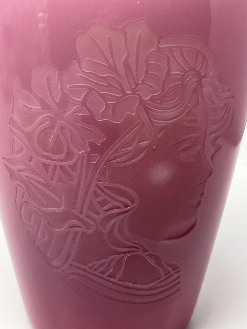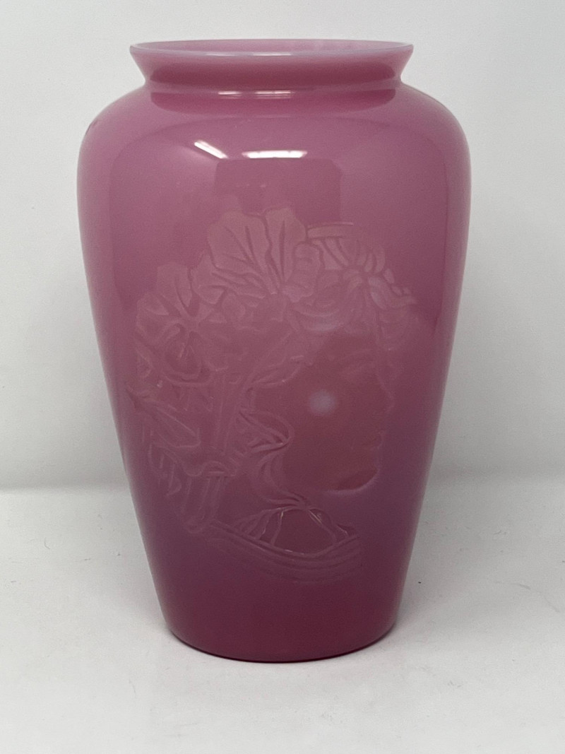Lot # 14 - Fenton Connoisseur Collection Rose Quartz Vase – Sand-Carved Bacchus