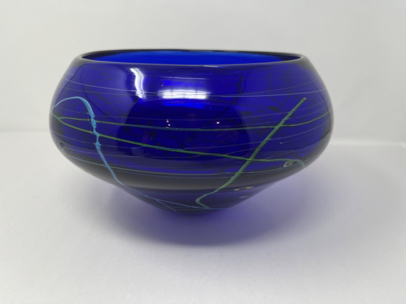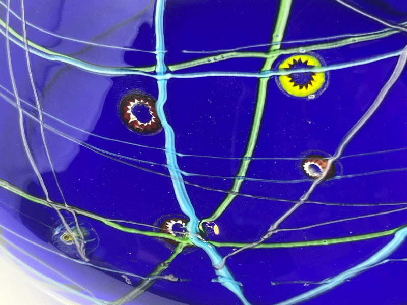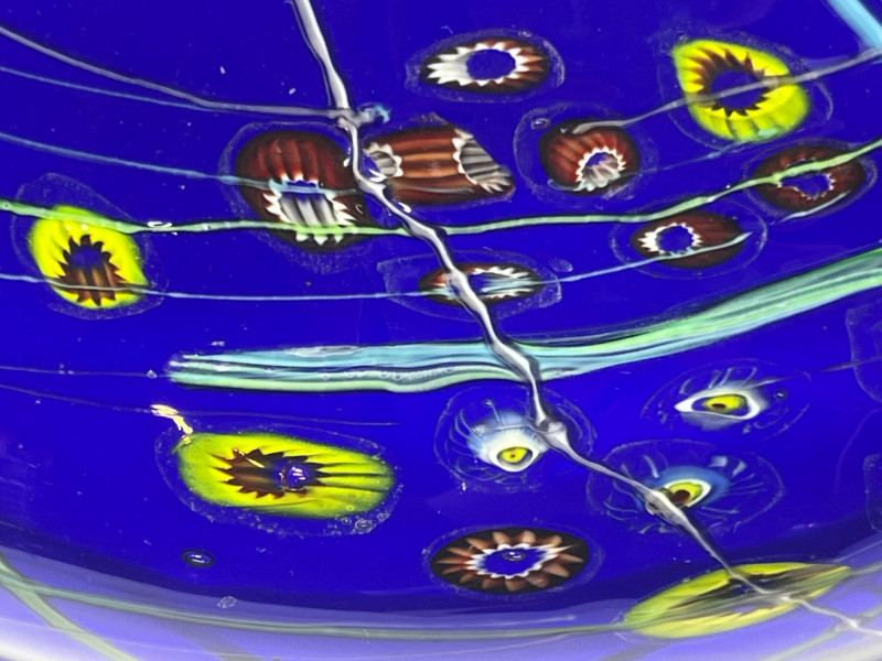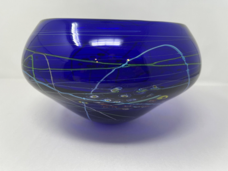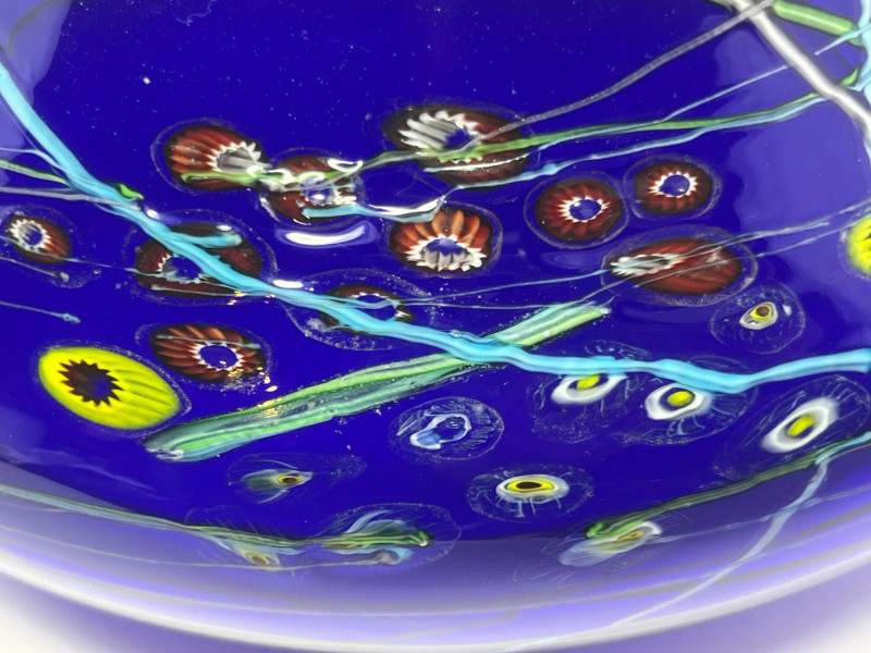 Lot # 15 - Vintage Hand-Blown Cobalt Blue Art Glass Bowl with Millefiori & Swirl