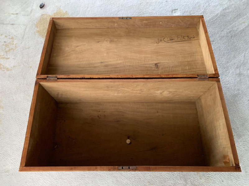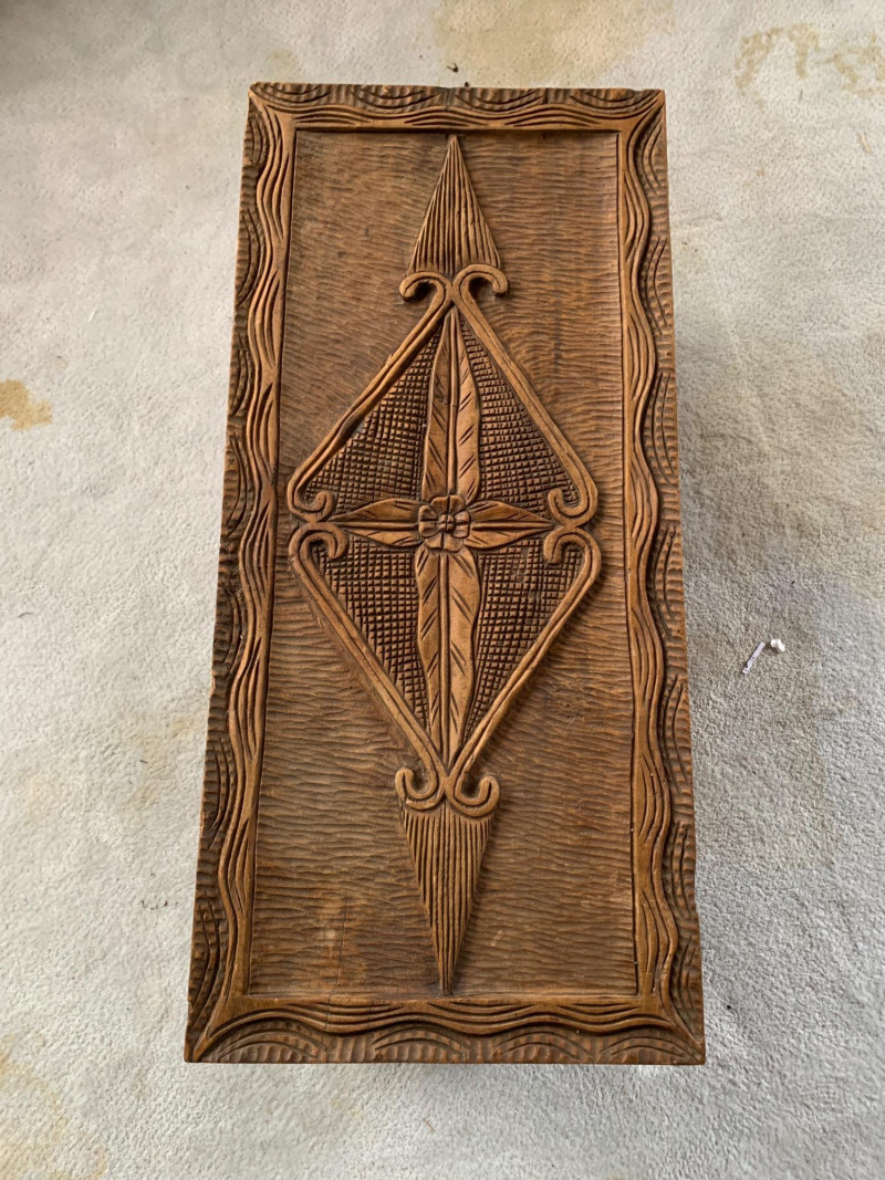 Lot # 24 - Vintage Hand-Carved Wooden Trunk – Folk Art Diamond & Scroll Motif