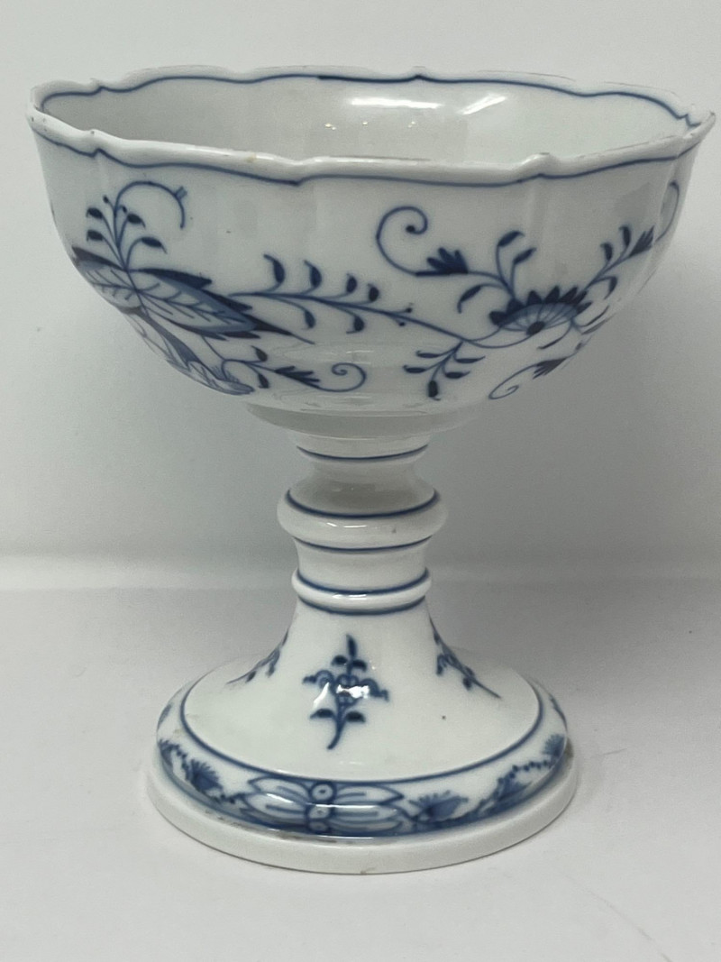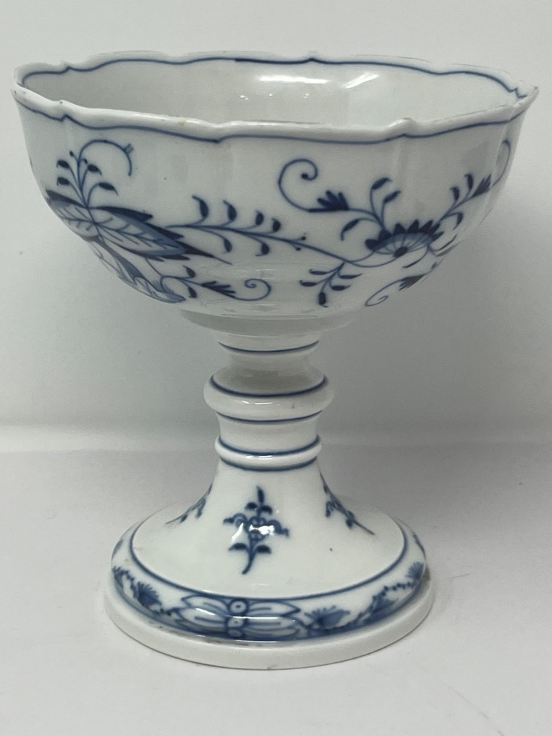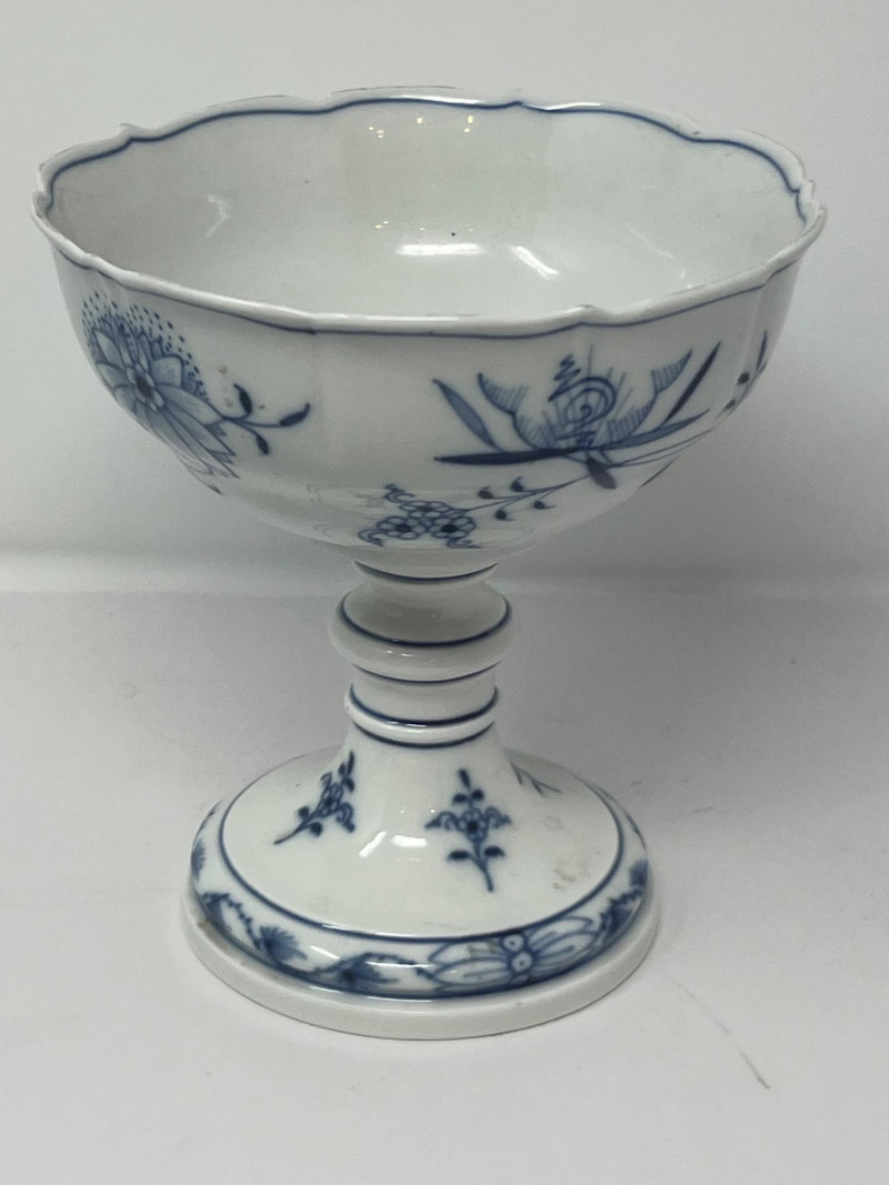 Lot # 27 - Meissen Blue Onion Porcelain Goblet – Scalloped Rim, Pedestal Base