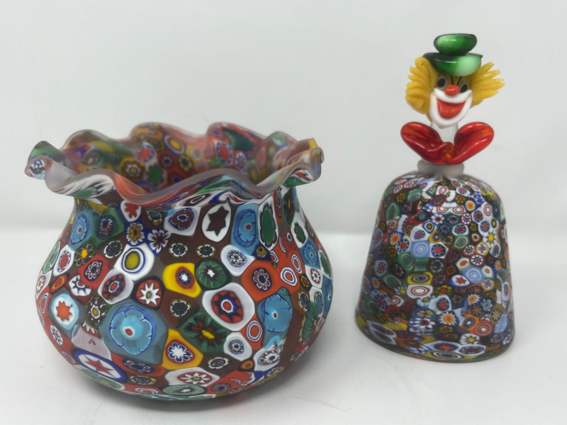 Lot # 32 - Vintage Murano Millefiori Glass Vase and Clown Figurine Set