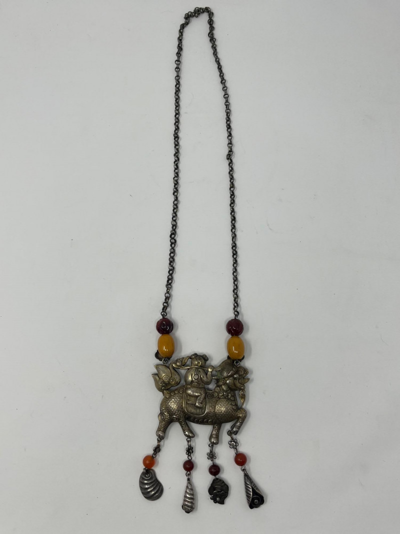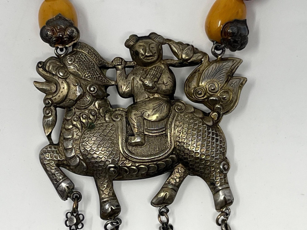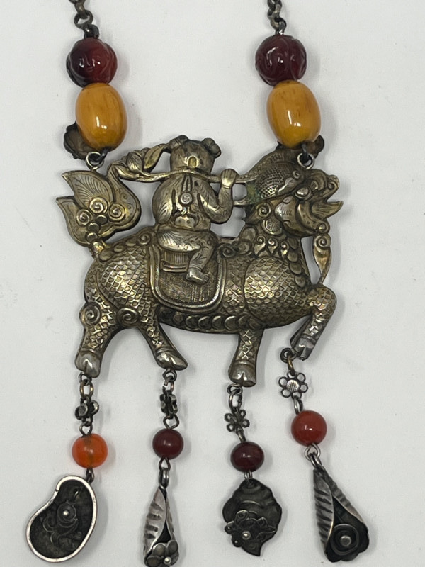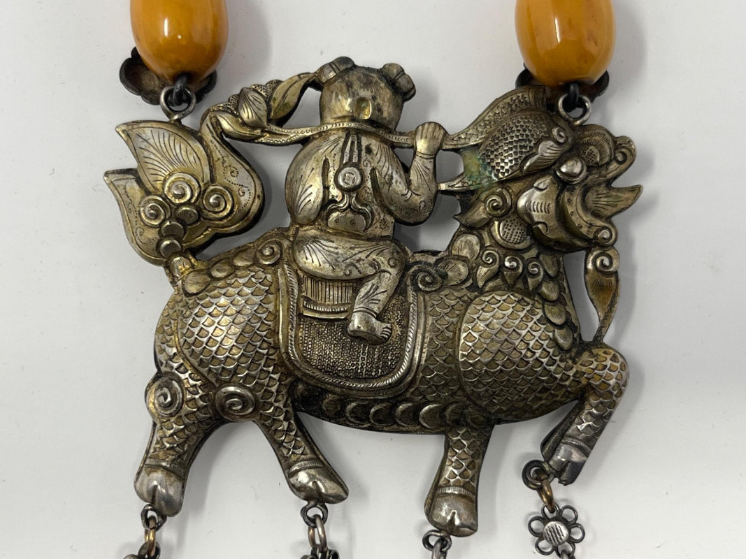 Lot # 39 - Qing Dynasty Silver Necklace- Boy on Qilin