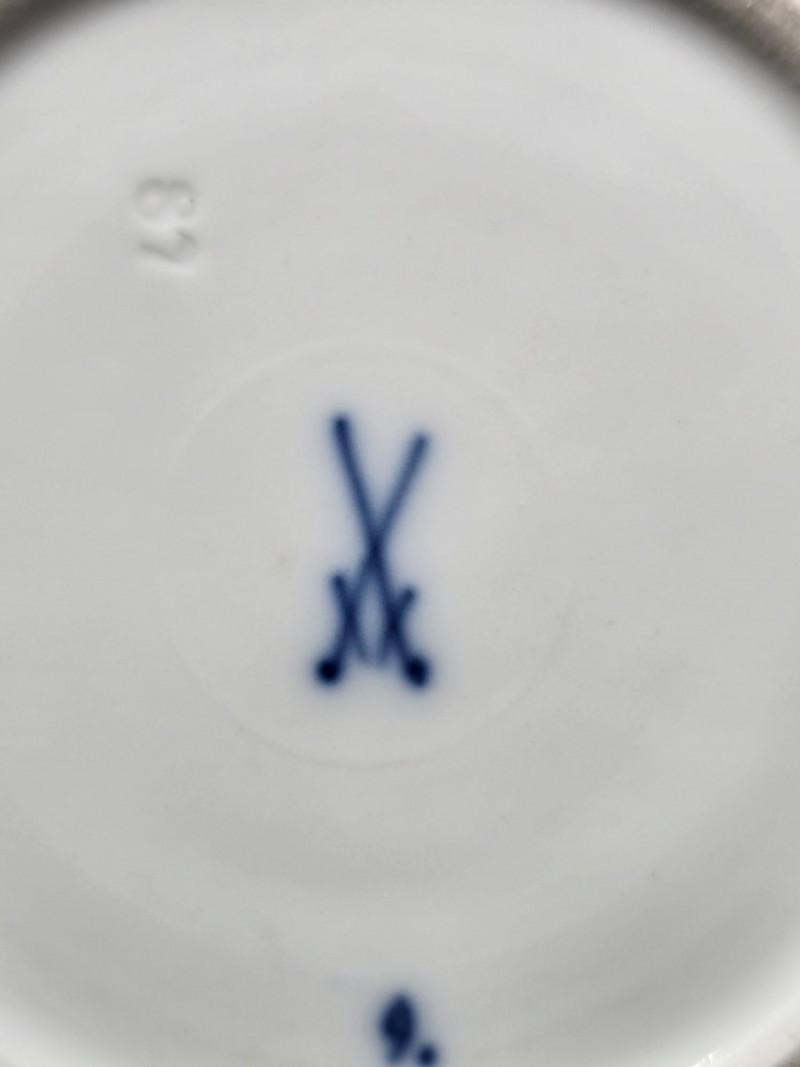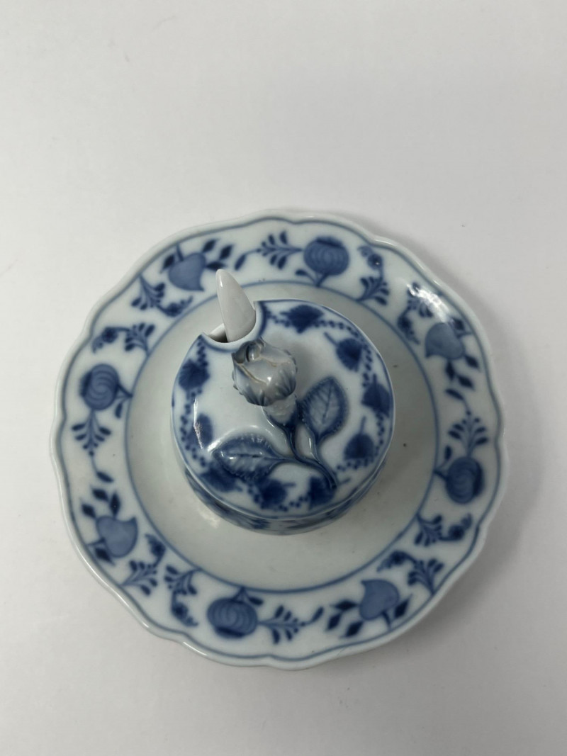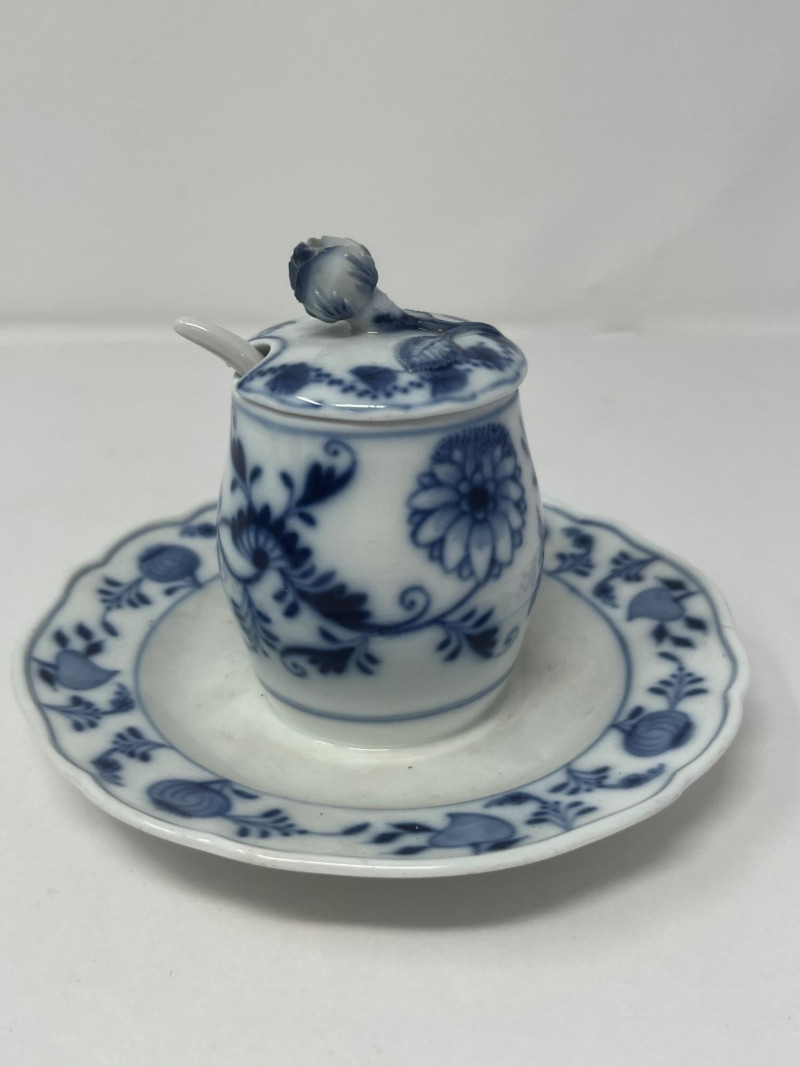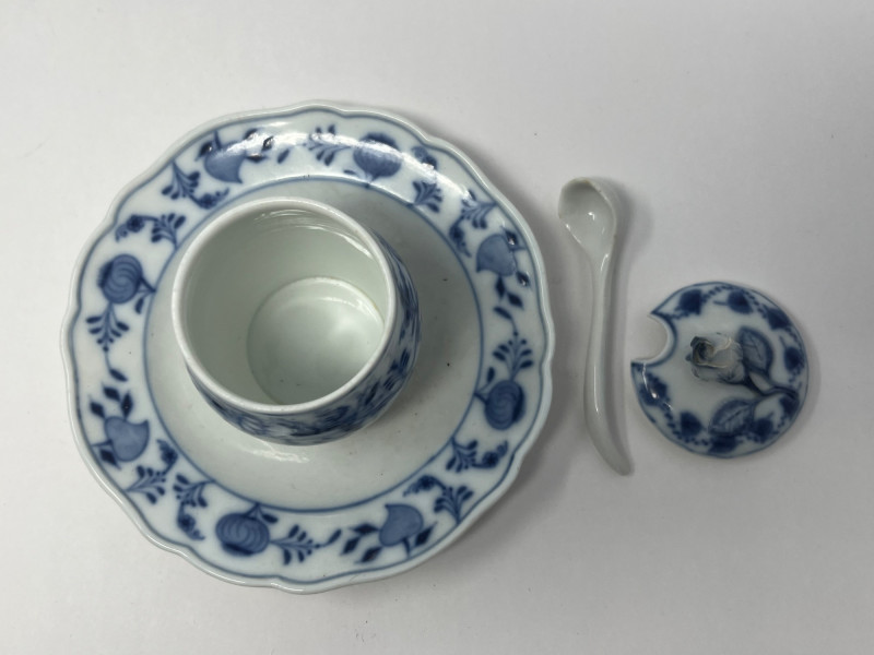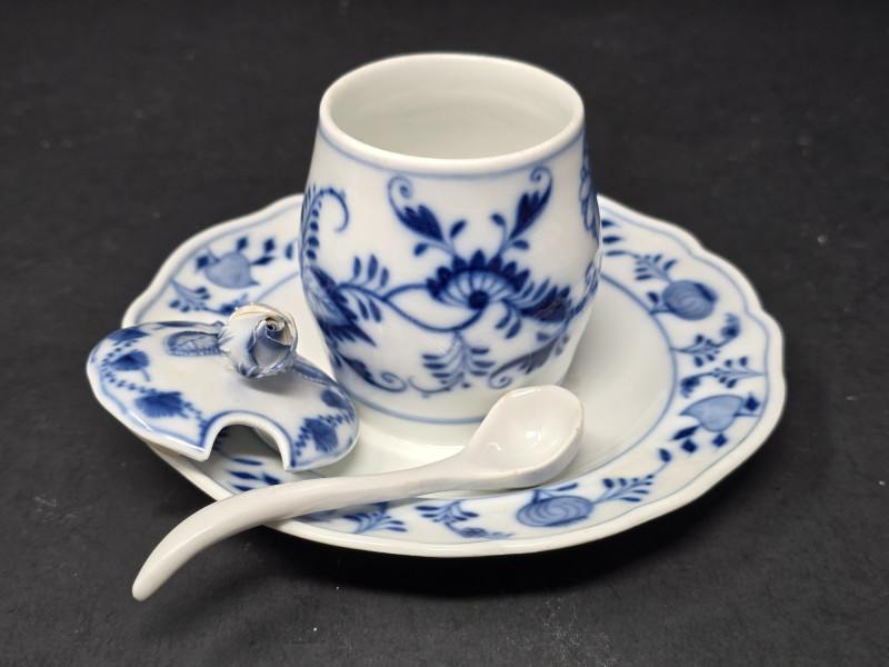 Lot # 43 - Meissen Blue & White Porcelain Condiment Jar – Lid, Spoon and Saucer