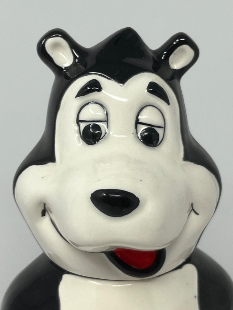 This listing is for a vintage Hamm's Beer Bear decanter, a classic piece of breweriana memorabilia from the 1970s. The ceramic decanter is shaped like the iconic Hamm's Beer Bear mascot, famous from the "Land of Sky Blue Waters" advertising campaigns. The item is an 11-inch tall bottle with a removable cork and ceramic head that serves as the lid. Brand: Hamm's Beer Era: 1970s Character: Hamm's Beer Bear (Sasha) Material: Ceramic Dimensions: Approximately 11 inches tall Markings: "Hamm's" is visible on the front of the bear's torso. Condition: This is a pre-owned vintage item. Please examine all photos closely, as they are part of the description. Minor wear and crazing are common with items of this age. These decanters are highly sought after by collectors of vintage beer memorabilia and breweriana. They were produced in Brazil by Ceramarte in the early 1970s, with many dated to 1972 or 1973. This is a great piece for a man cave, home bar, or any collection of classic advertising items.