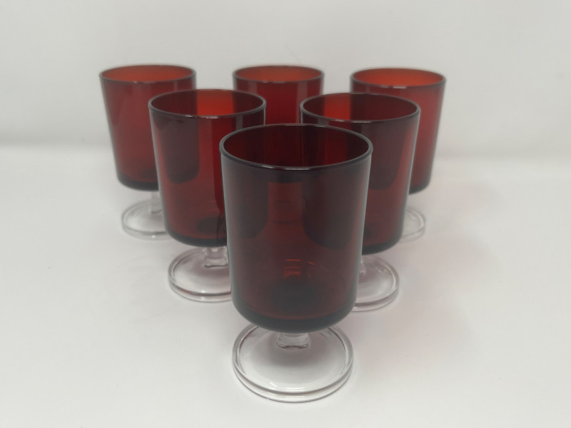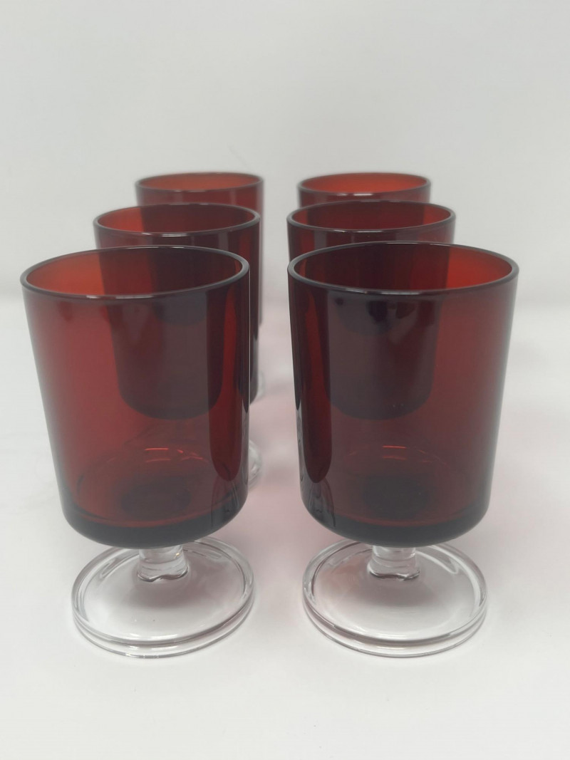 Lot # 66 - Vintage Luminarc "Cavalier" Ruby Red Stemmed Glasses