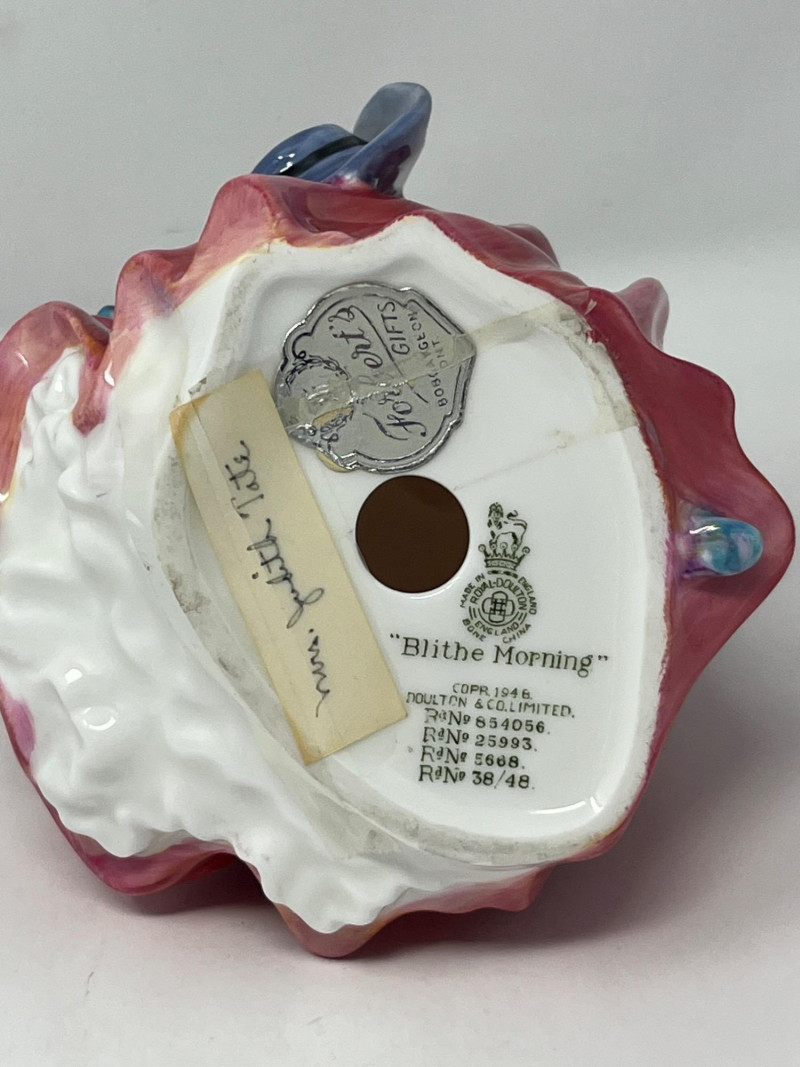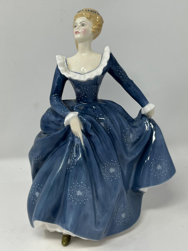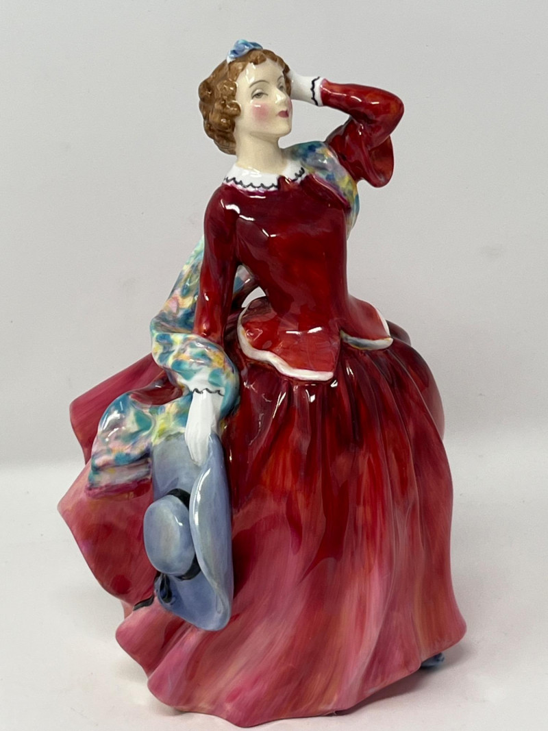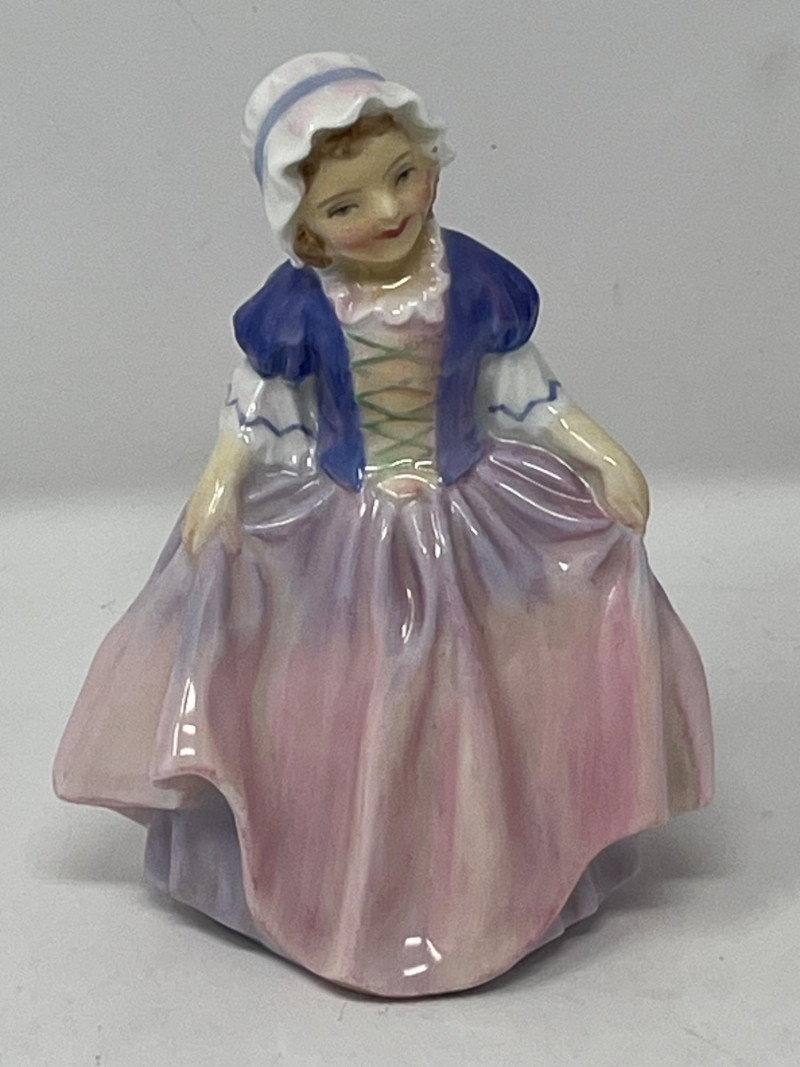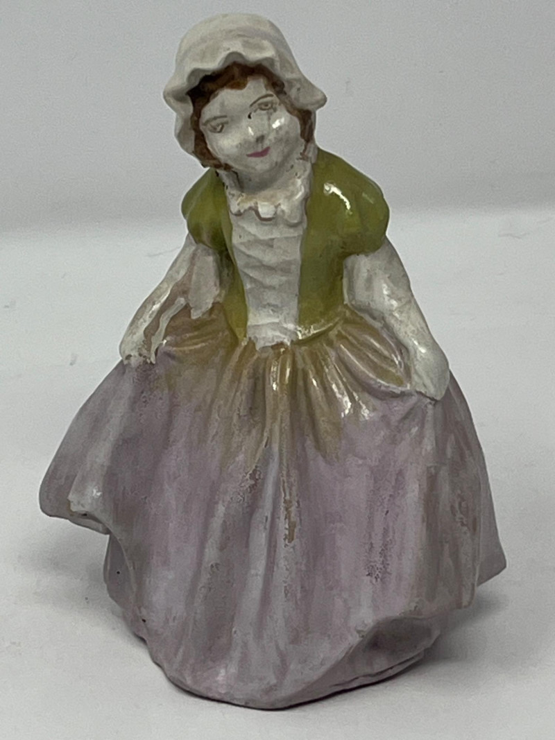 Summary: A graceful collection of six Royal Doulton bone china figurines featuring women and children in Victorian and Edwardian-style attire. Each piece is hand-painted with delicate detailing, from flowing gowns to bonnets and shawls. Includes seated and standing figures, with heights ranging from 3.5" to 8". A charming ensemble for collectors of English porcelain and decorative arts. Maker: Royal Doulton Material: Fine bone china Color Palette: Lavender, red, blue, white, green, and pastel tones Dimensions: Children: Approx. 3.5" × 5" Women: Approx. 6" × 8" Design Features: Period-style dresses with lace, shawls, and bonnets Seated and standing poses Hand-painted with high-gloss glaze Era: Mid-20th century to early 21st century (attributed) Condition: Excellent; no chips or cracks notedItem Details