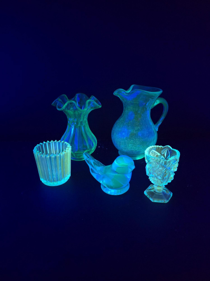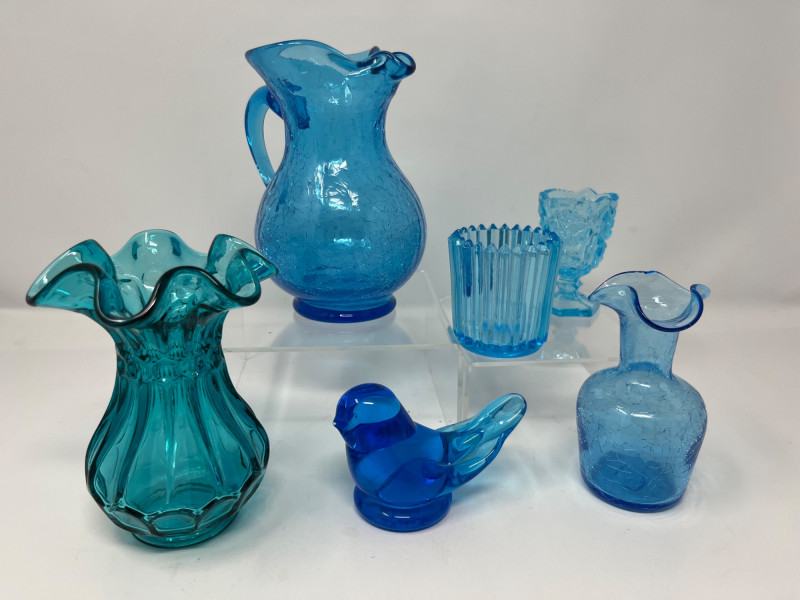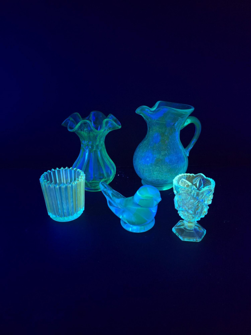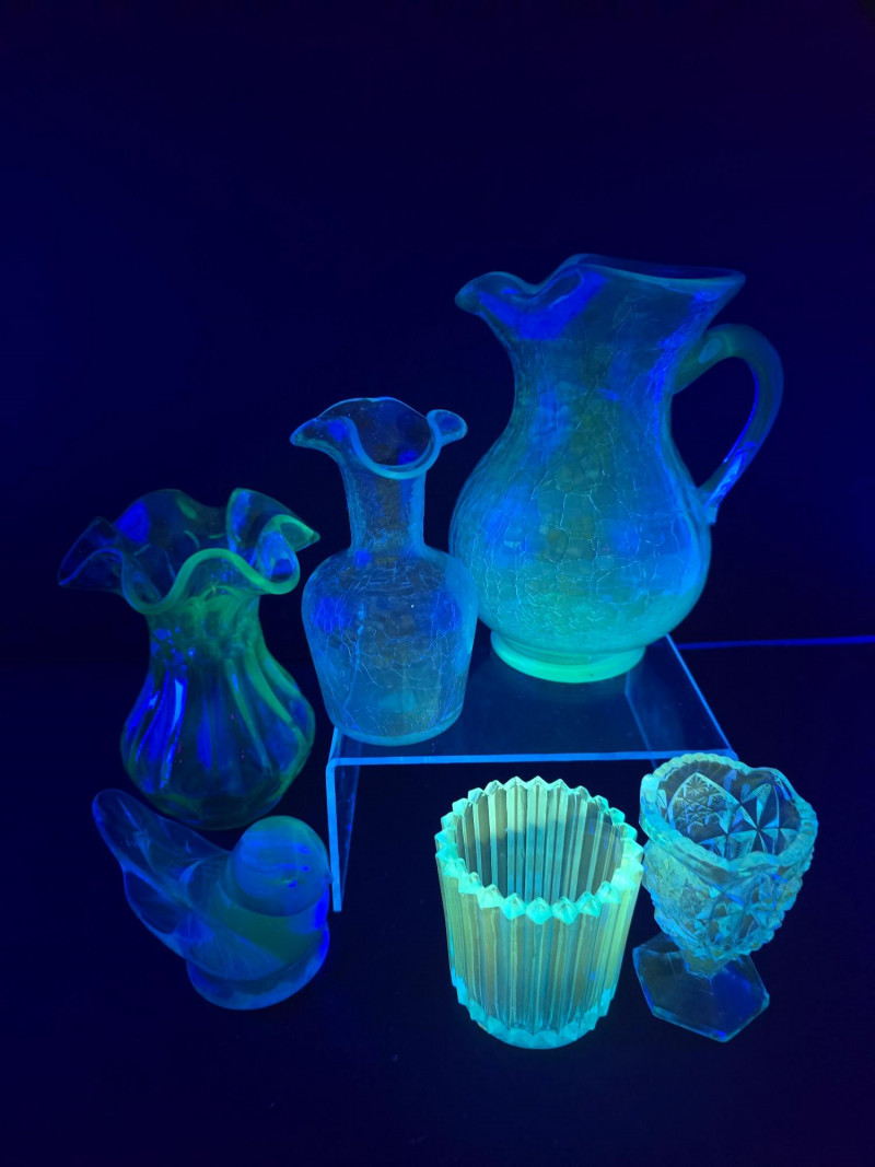 Lot # 90 - UV-Reactive Blue Glass Collection-Vases, Pitchers and More