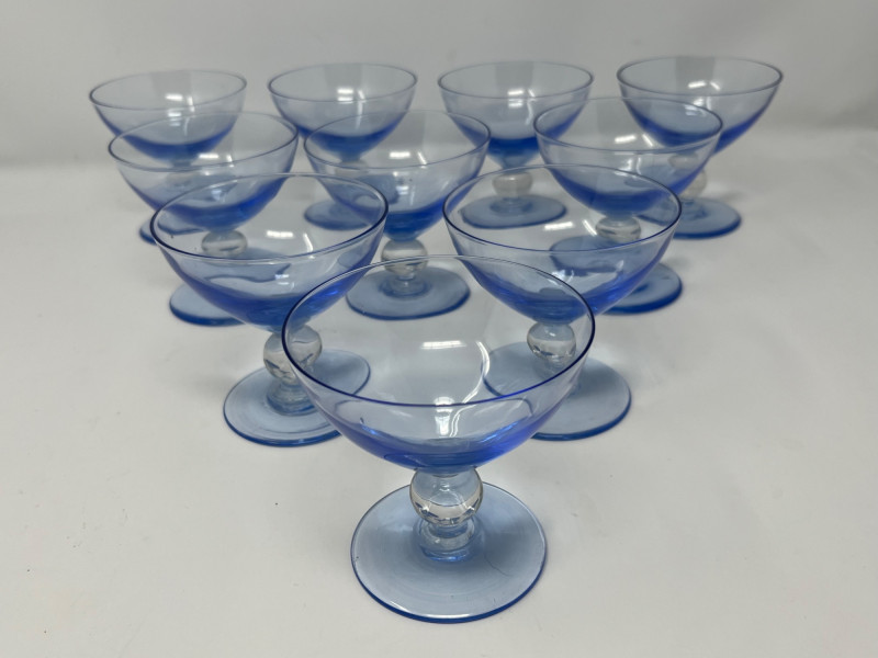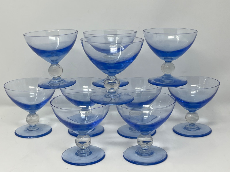 Lot # 92 - Set of 10 UV-Reactive Dessert Coupes – 3.5" Blue Glass Bowls with Orb