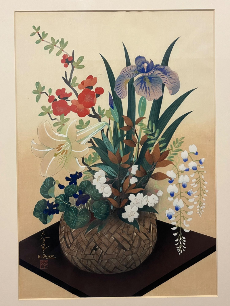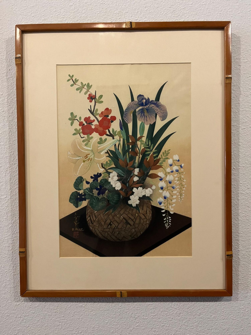 Lot # 99 - Vintage Ohno Bakufu Woodblock- Flowers In Bamboo Basket (Spring)