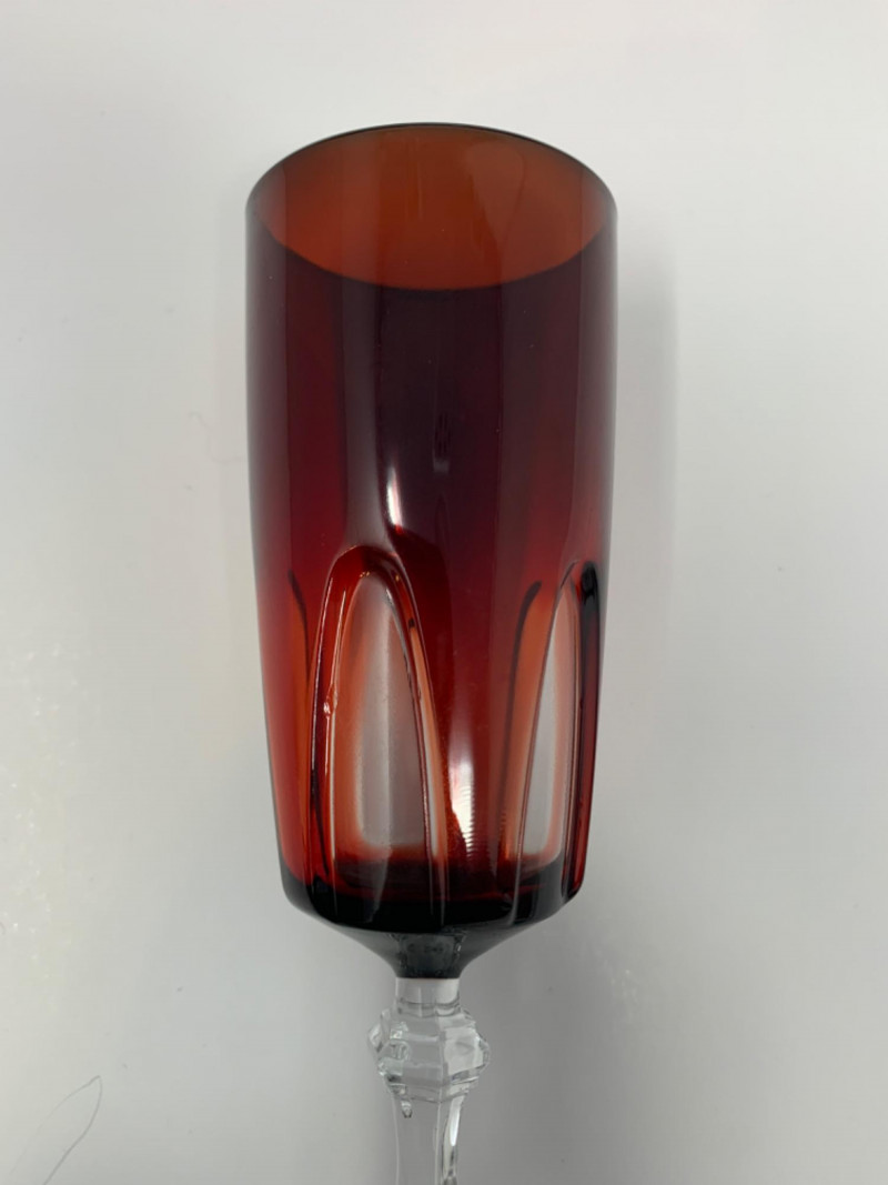 Lot # 104 - Vintage Cristal D'Arques "Rubilux" Ruby Red Gothic Champagne Flutes