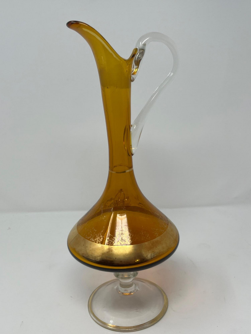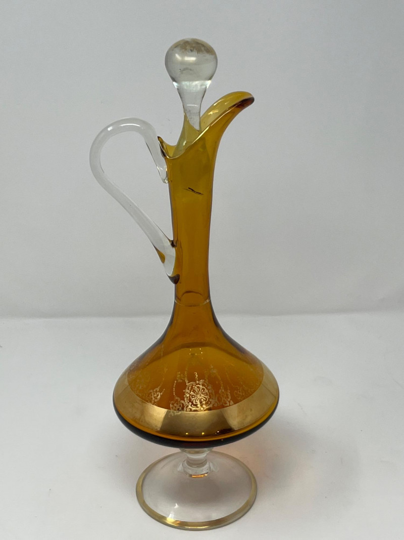 Lot # 105 - Vintage Italian Mid-Century Amber Glass Decanter Carafe with Handle