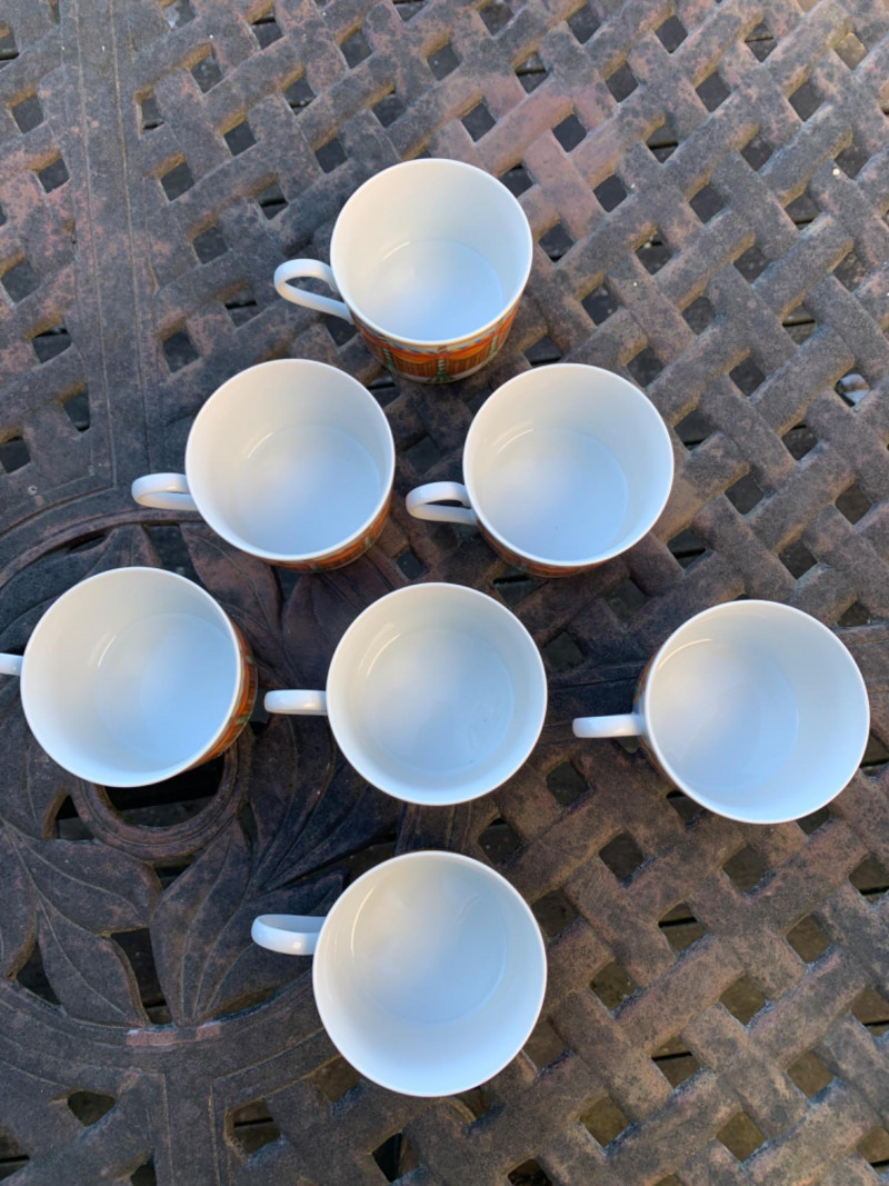 The pieces are in excellent vintage condition with no chips, cracks, or crazing. There may be minor signs of wear consistent with age and use, but they are very well-preserved. They are microwave and dishwasher safe. Please review all photos for details on the specific pieces included and their condition, as they are part of the description.