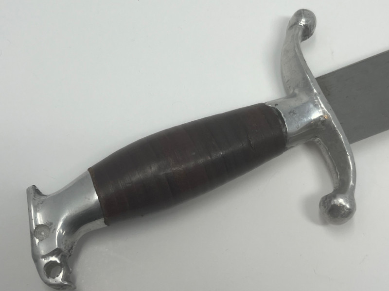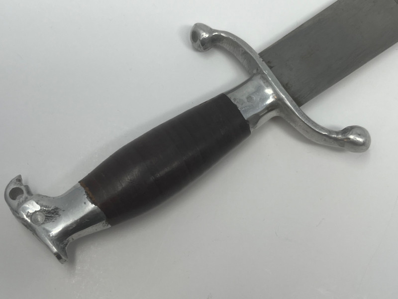 The item is in "as found" condition, showing wear and a dark patina consistent with its age. The blade has surface rust and pitting, which is expected for an item of this vintage. There are no visible markings or maker's marks, which is common for some of these types of swords. Please examine all photos carefully as they are part of the description.