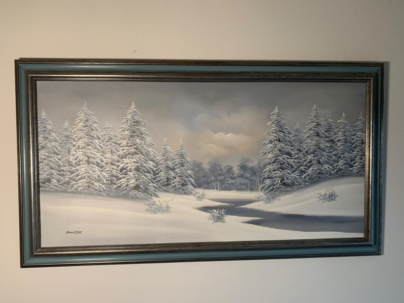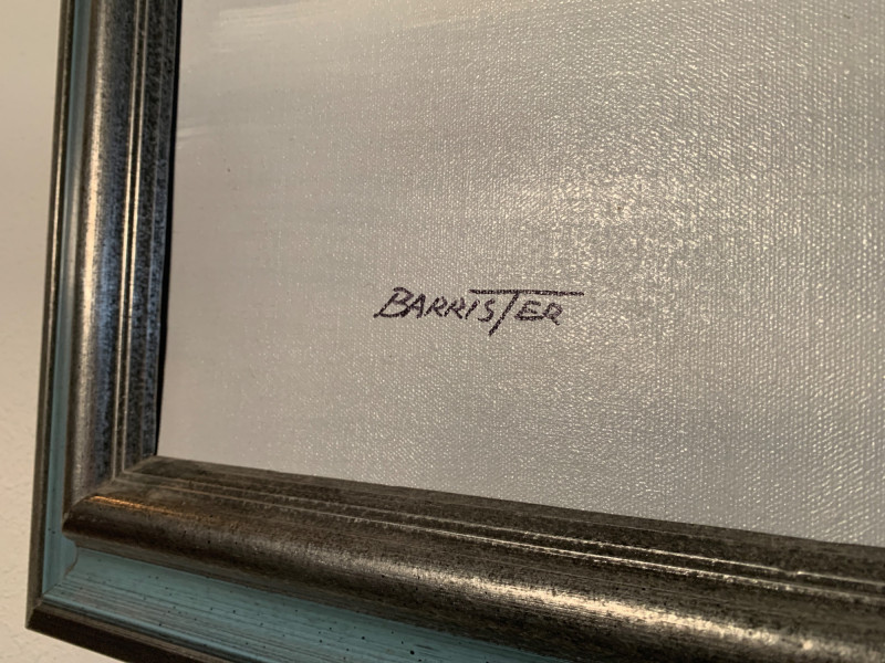 The name "Barrister" is a known signature on a number of similar winter landscape paintings. Some art experts suggest this may be a studio name or a fictitious artist name, with the works produced in a factory setting, possibly in Asia. The painting is believed to date back to the mid-20th century, likely from the 1960s to 1980s.