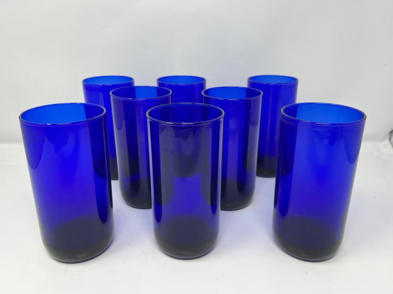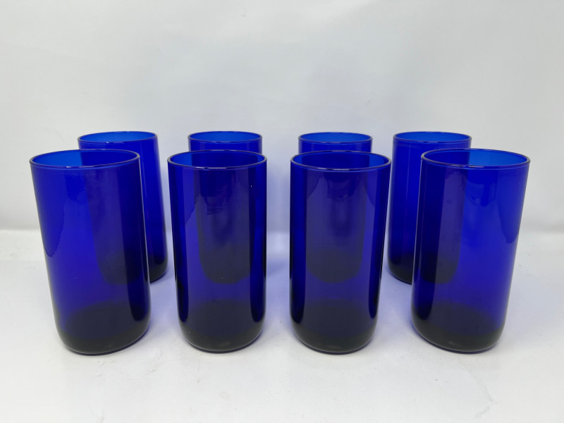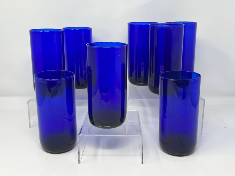 Lot # 137 - et of 8 Vintage Libbey Cobalt Blue Glass Tumblers – 16 oz Flare Style