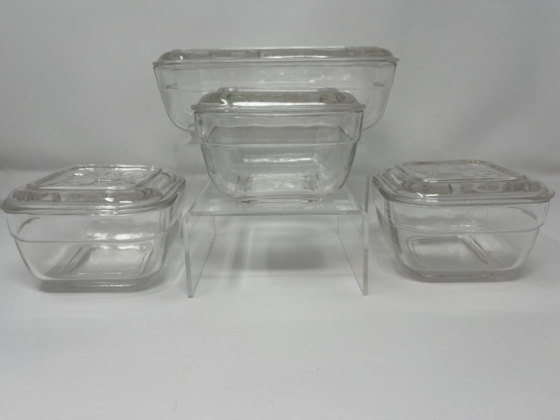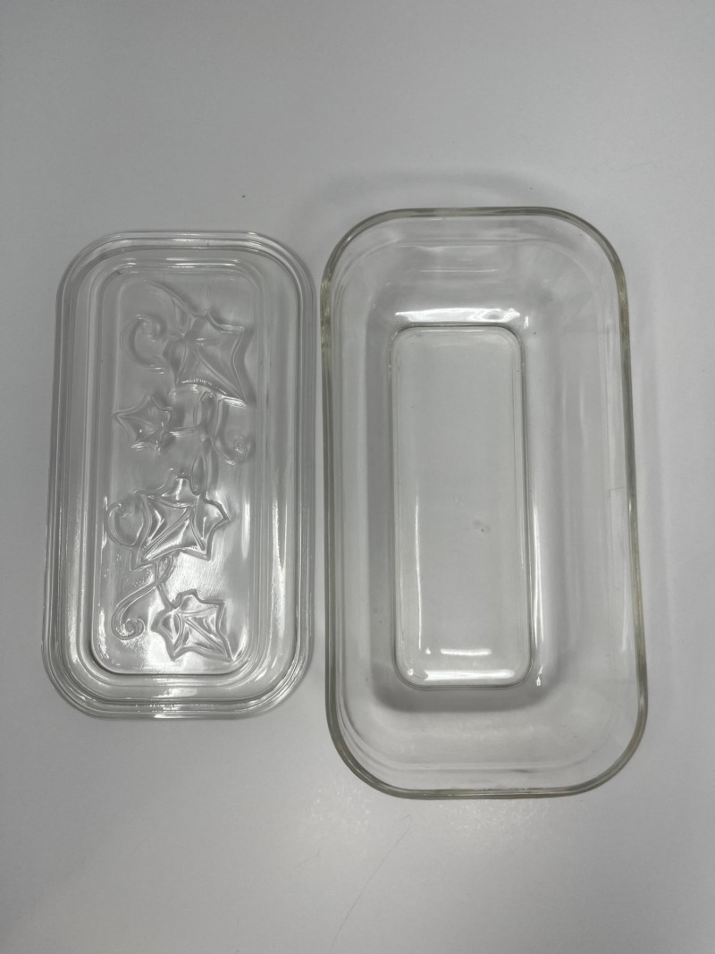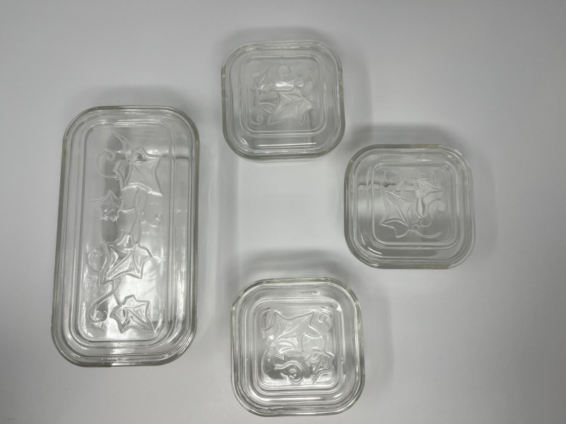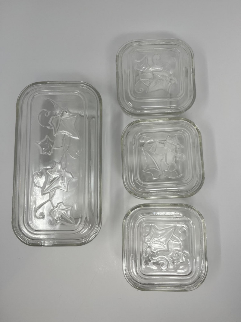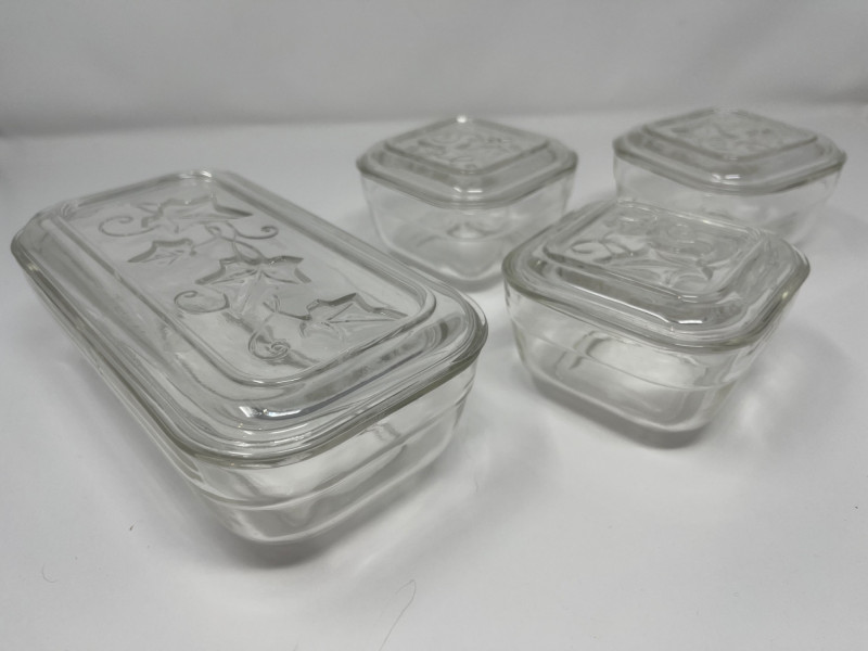 Lot # 141 - Vintage Hazel-Atlas Clear Glass Ivy Leaf Refrigerator Dish Set
