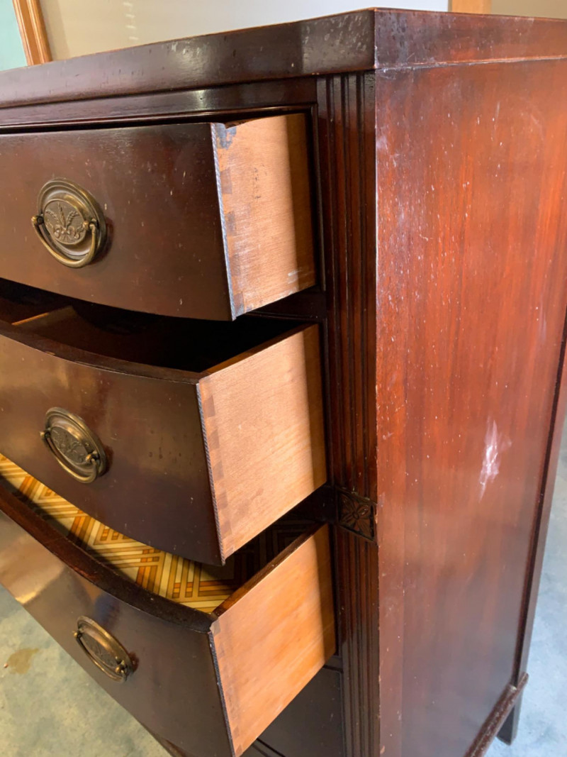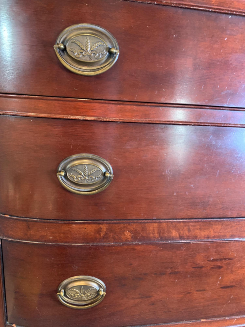 Lot # 156 - Vintage Drexel Mahogany Bowfront Tallboy Dresser in Federal Style