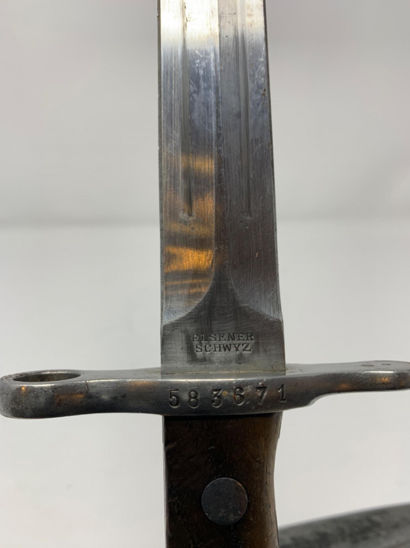 Lot # 166 - Swiss M1918 Bayonet with Scabbard by Elsener Schwyz (Victorinox)