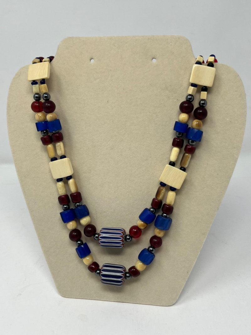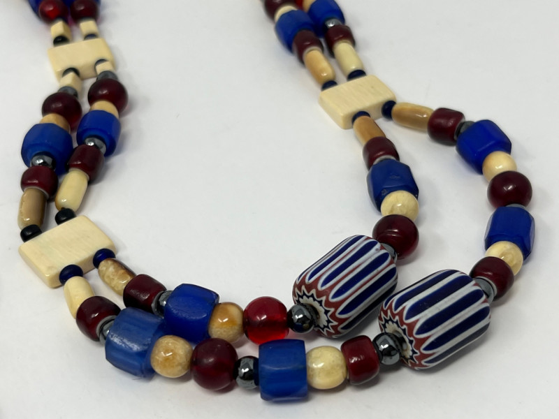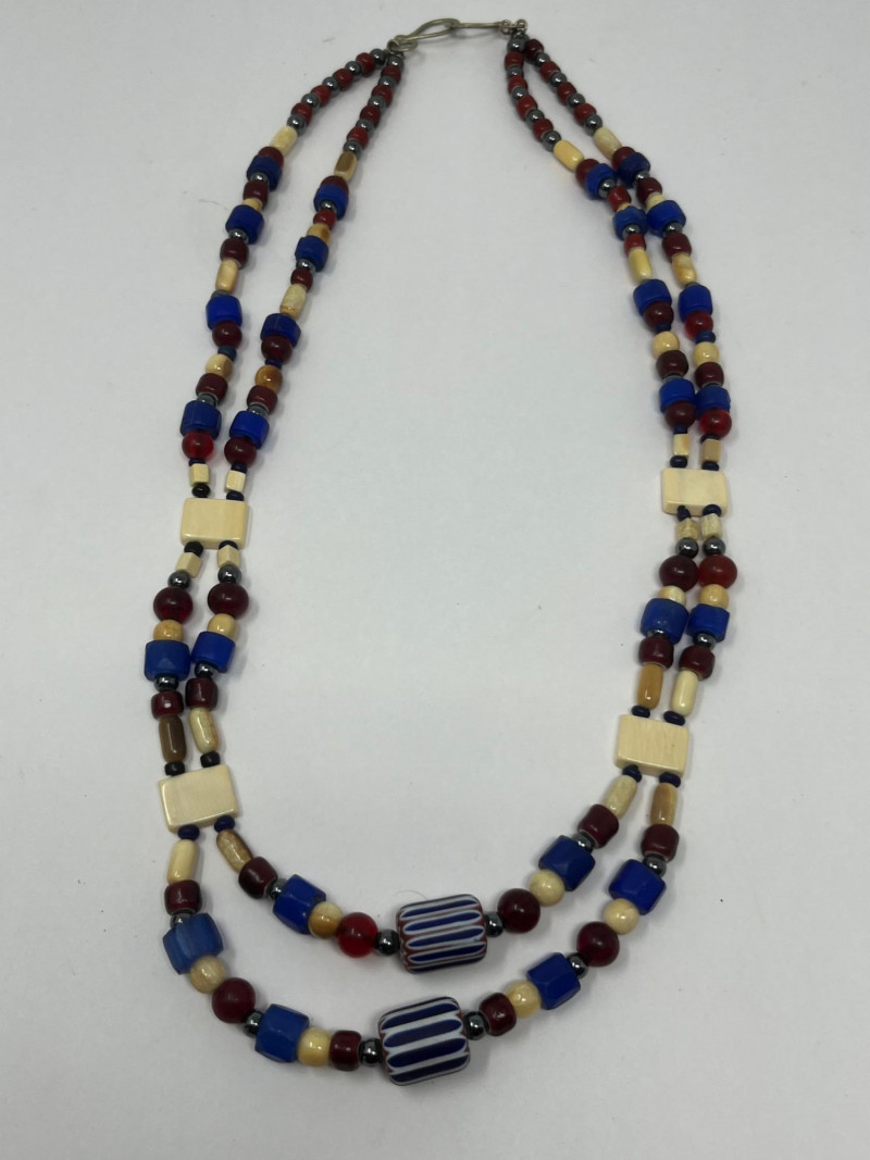 Beaded Necklace: Double strand, approximately 20 inches in length.