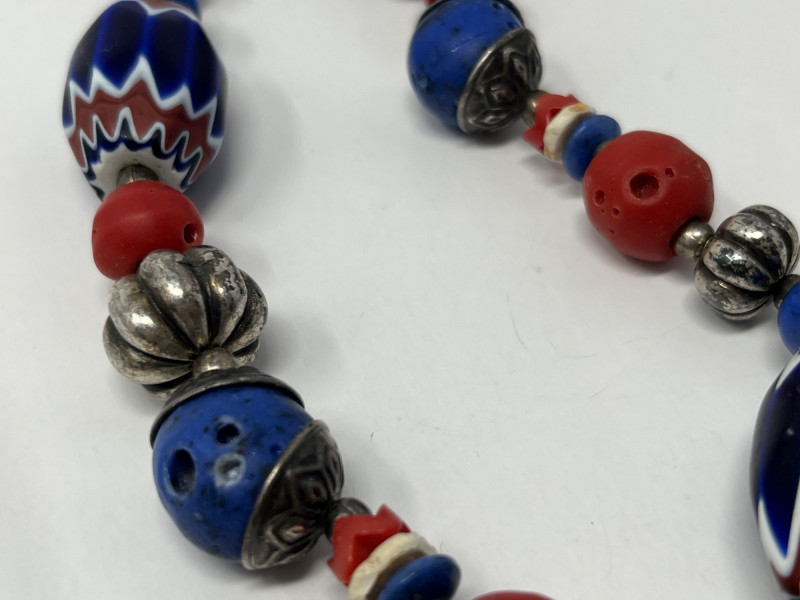 Lot # 185 - Vintage Venetian Style "White Heart" and "Chevron" Glass Bead Necklace