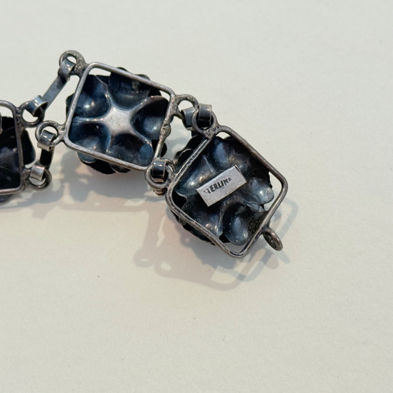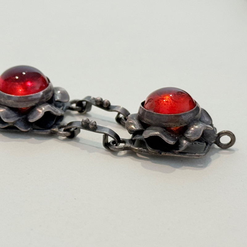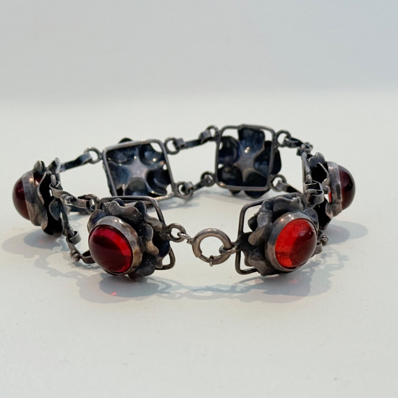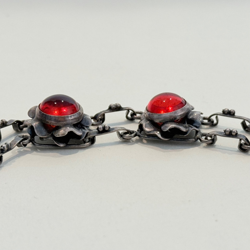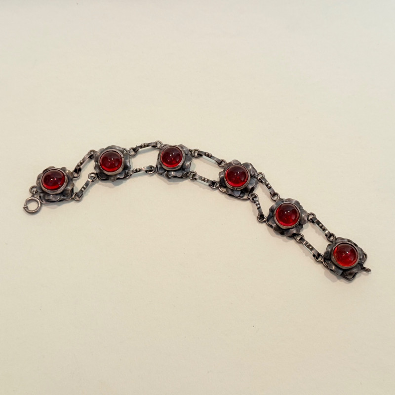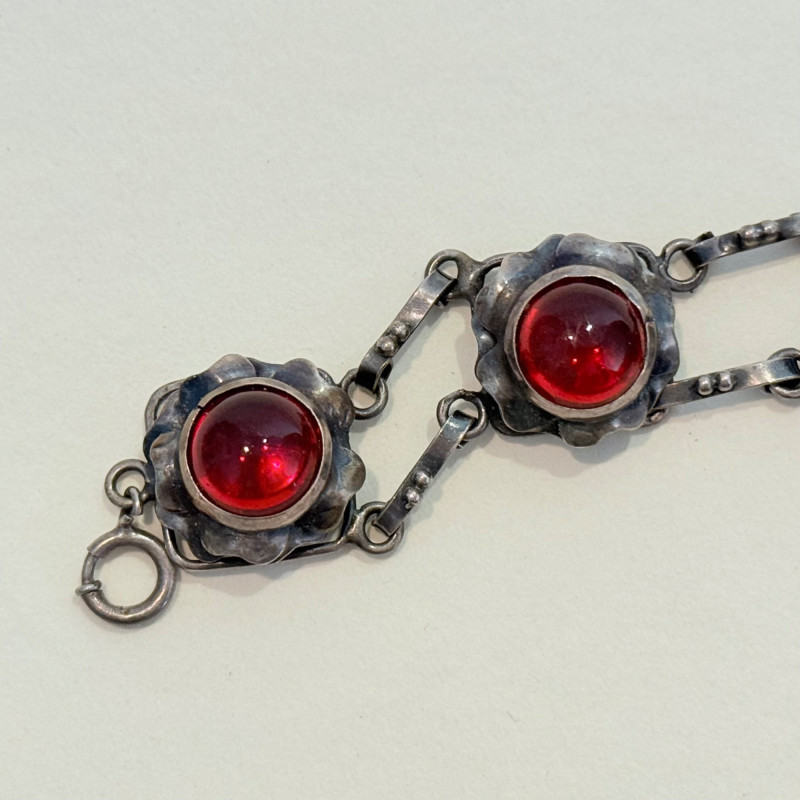 Lot # 5 - Sterling Bracelet with Red Glass Cabochons