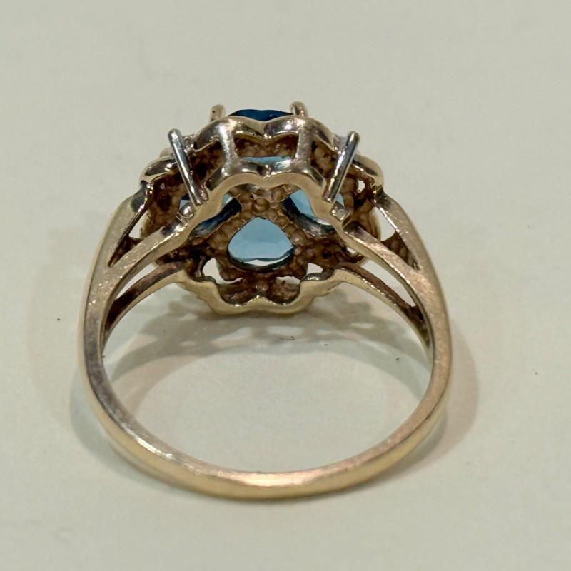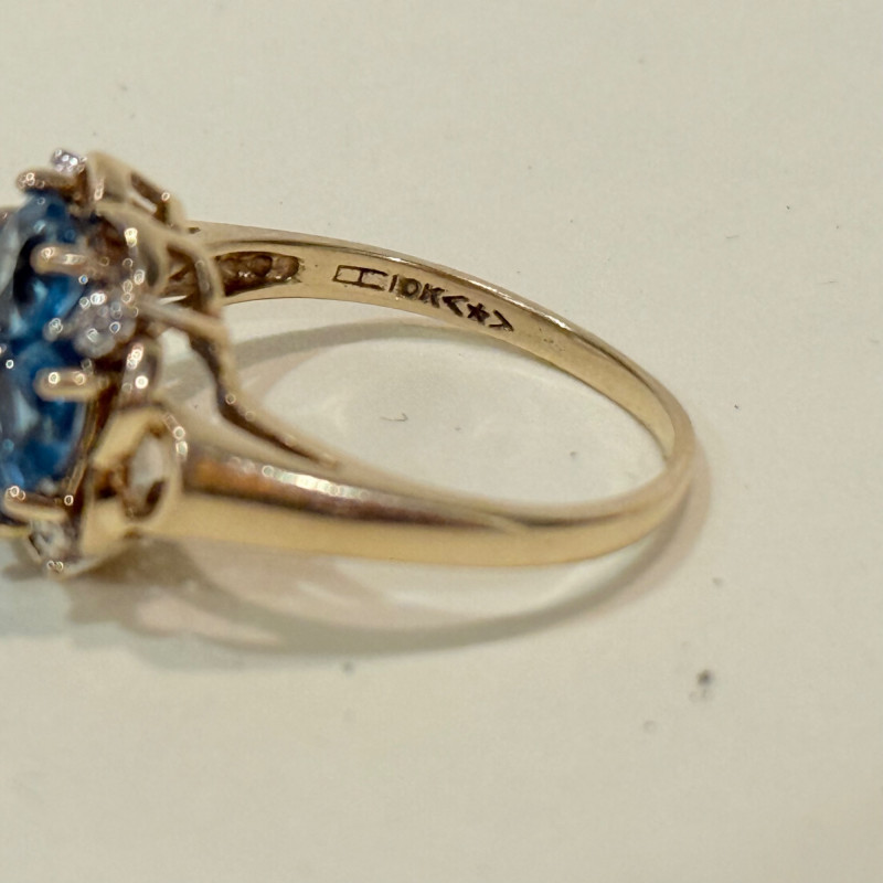 Lot # 15 - Blue Topaz and Diamond 10k Ring-3.2 Grams