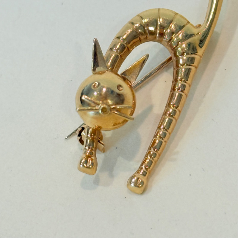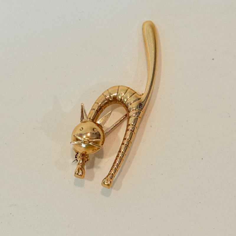 Lot # 46 - Unoaerre 18K Gold Stylized Cat Brooch – 5.5g – Made in Italy