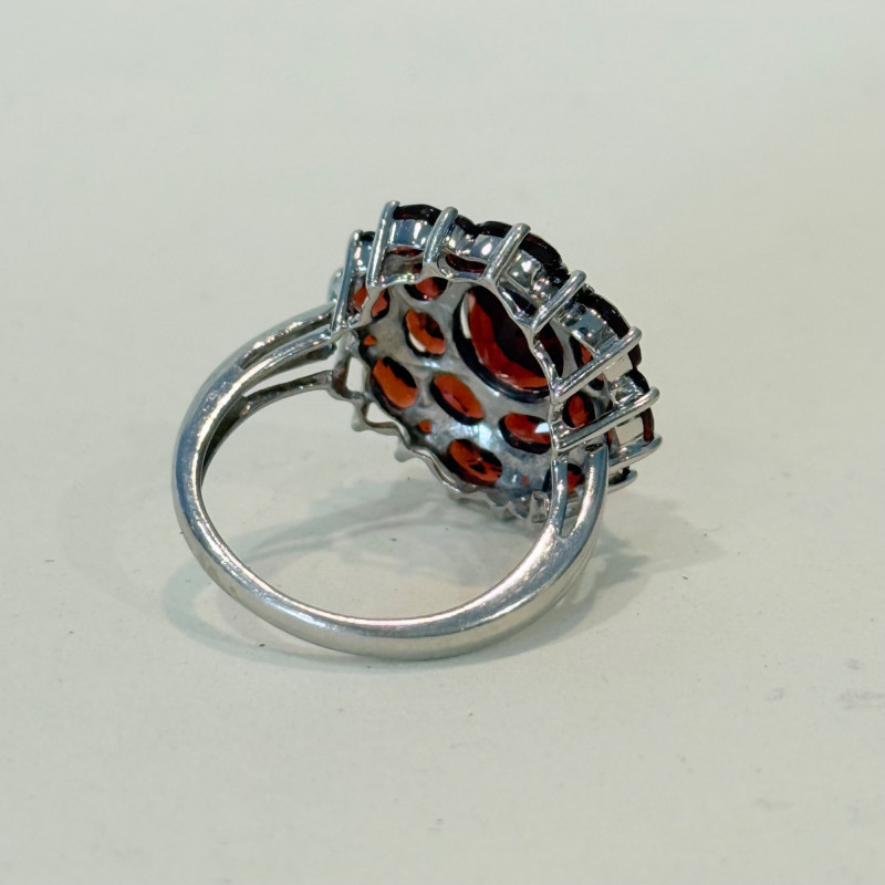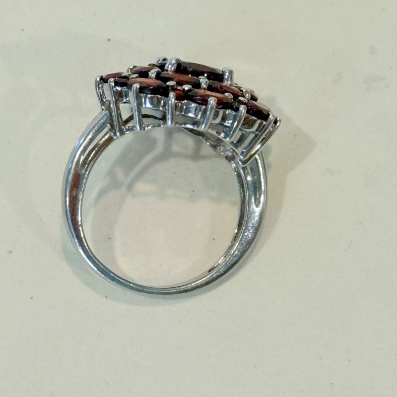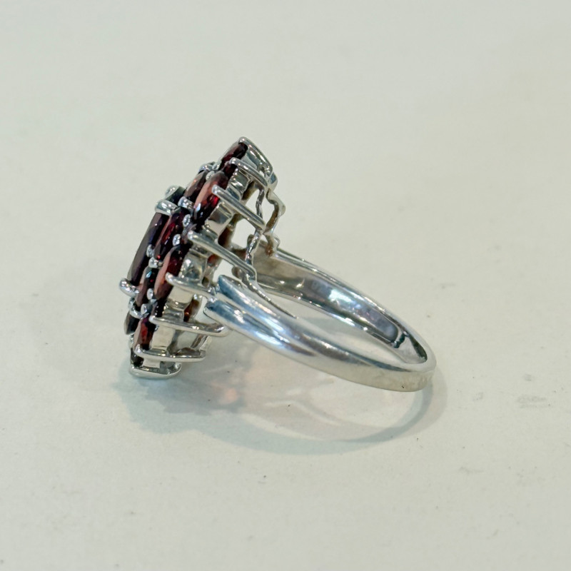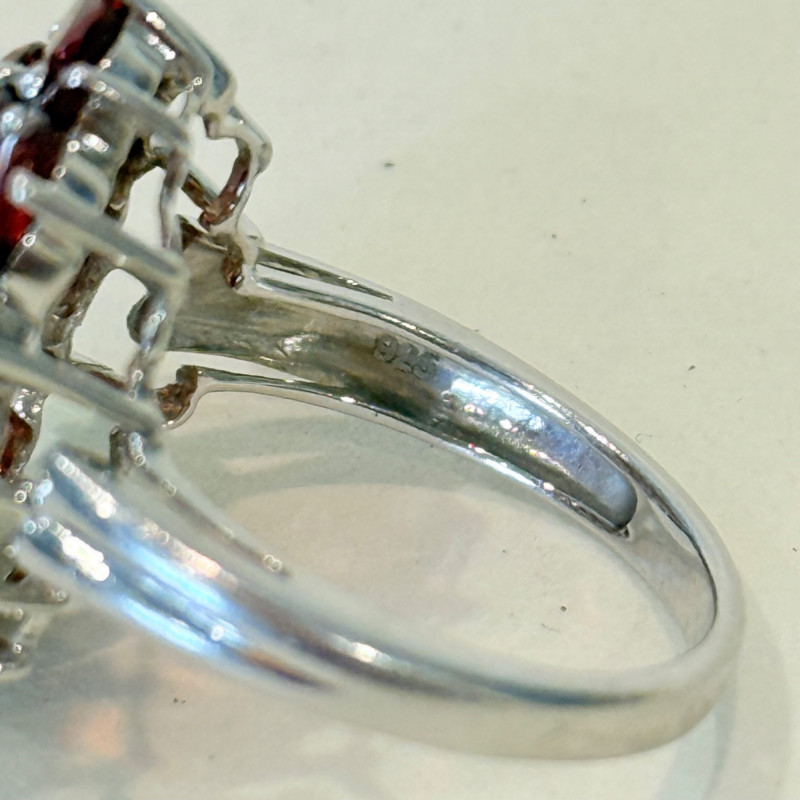 Lot # 48 - Sterling Silver Cluster Ring with Garnet – Size 7.5, 6.2g