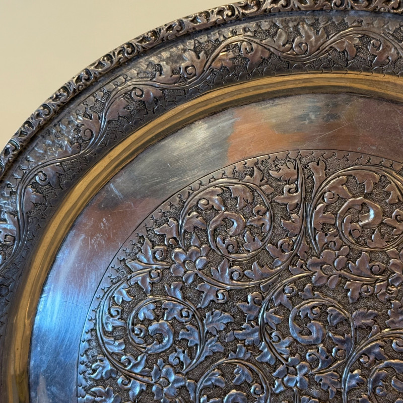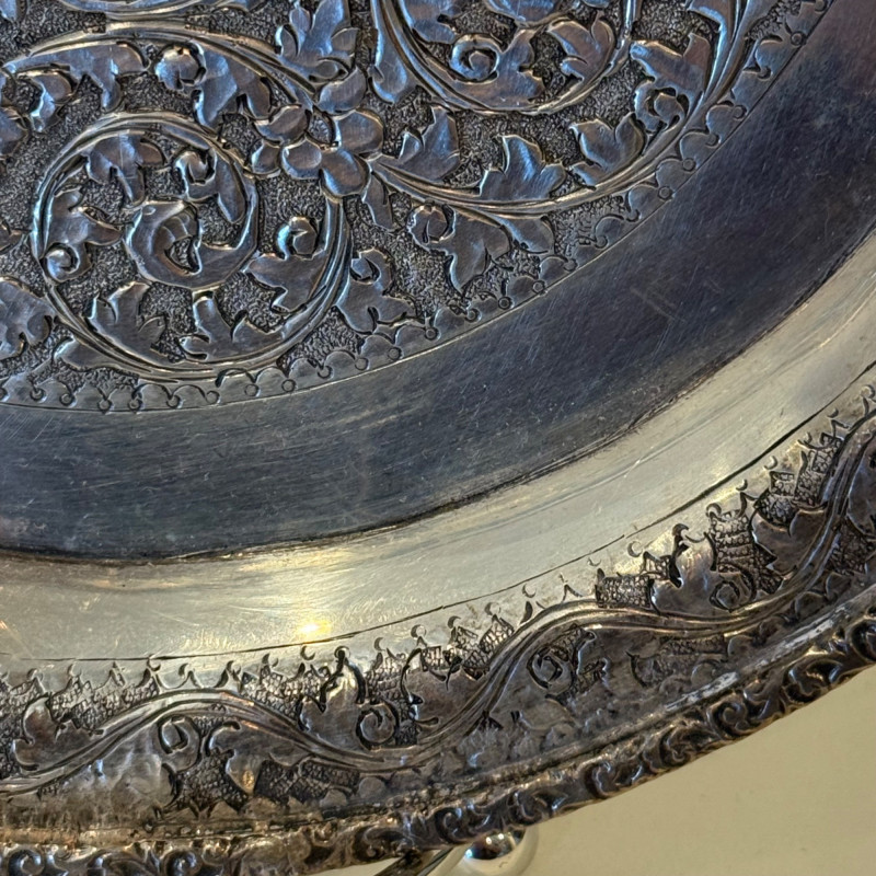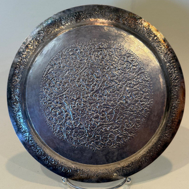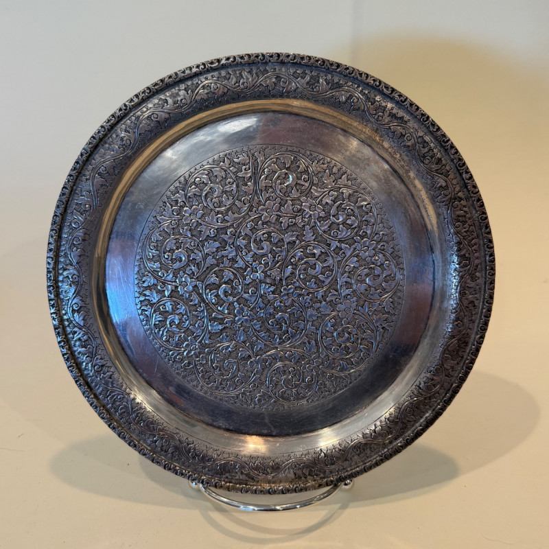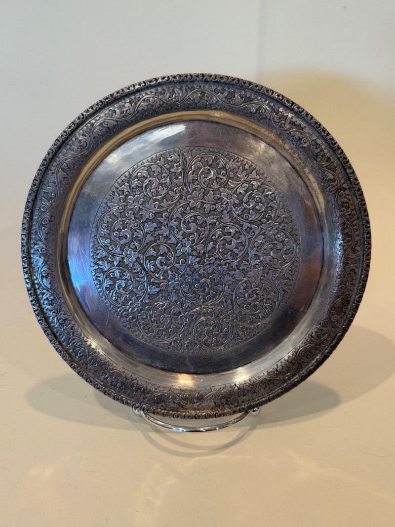 Lot # 61 - Pakistani Plate/Tray Ornate Sterling Silver with Floral Arabesques