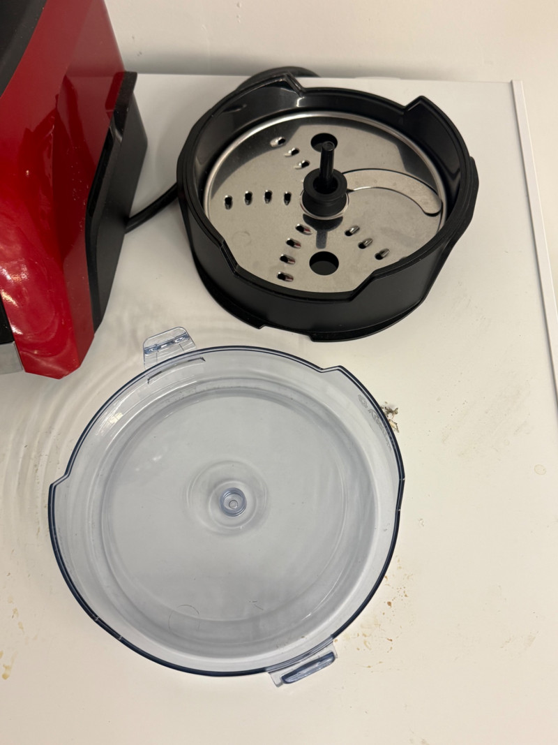 Type: High-Performance Blender & Food Processor System Blender Base Unit Digital control panel Red and black finish Cord length: 3.5 feet Blender Jar Clear container with tamper inserted through lid Food Processor Attachment Transparent bowl with feed chute Mounted on black base Food Processor Lid with Slicing Disc Interchangeable component for slicing and prep versatility Smart System Compatibility: Designed for Vitamix’s Self-Detect containers Multi-Functionality: Blend, chop, slice, and puree with interchangeable attachments Digital Controls: Preset programs and variable speed for precision blending Space-Saving Design: Compact footprint with stackable components for easy storage Measures 11" x 8" x 17"; Cord 3.5'LIncluded Components