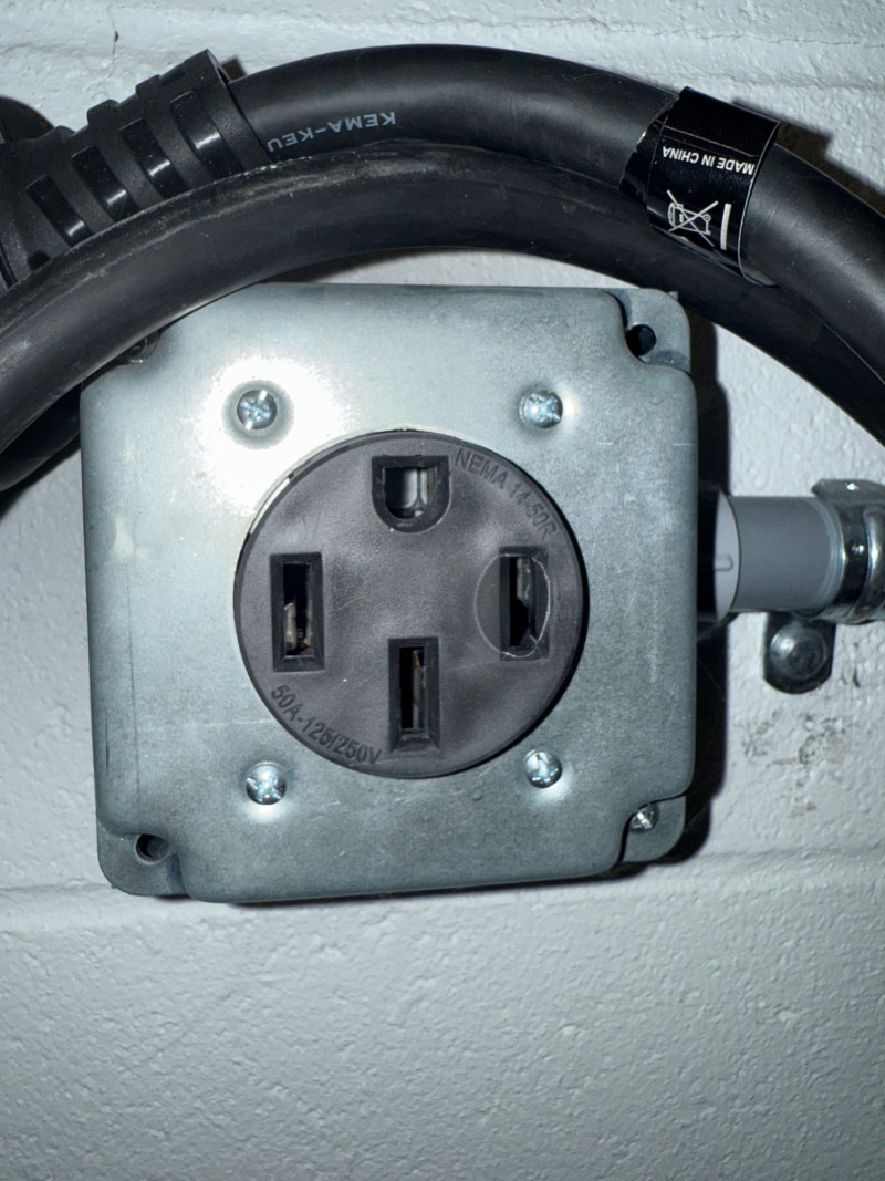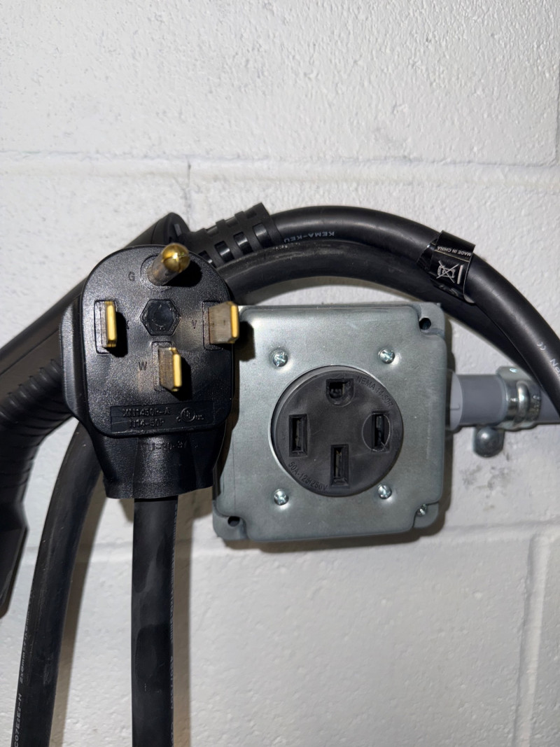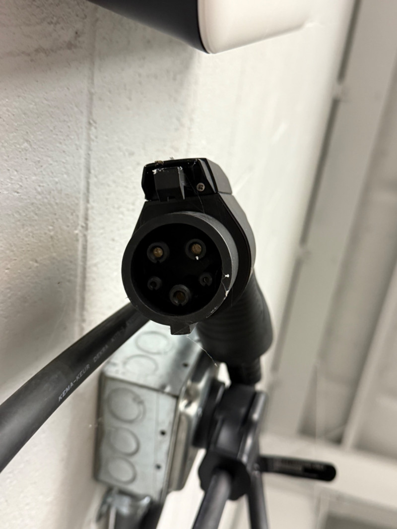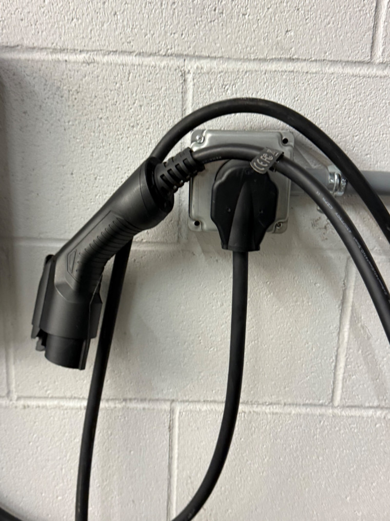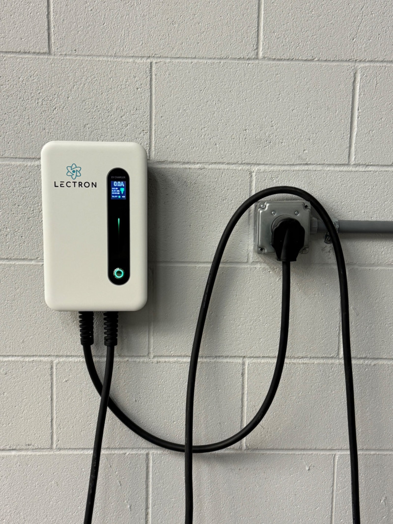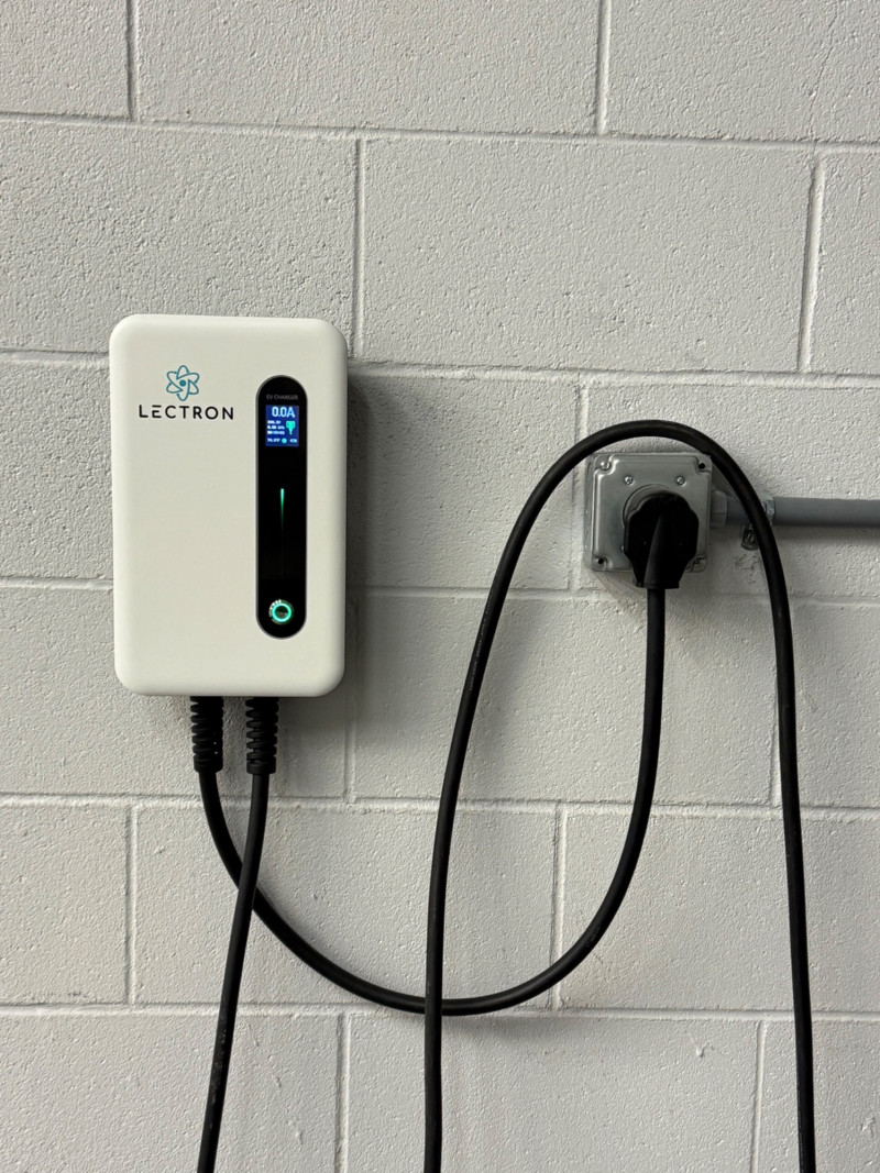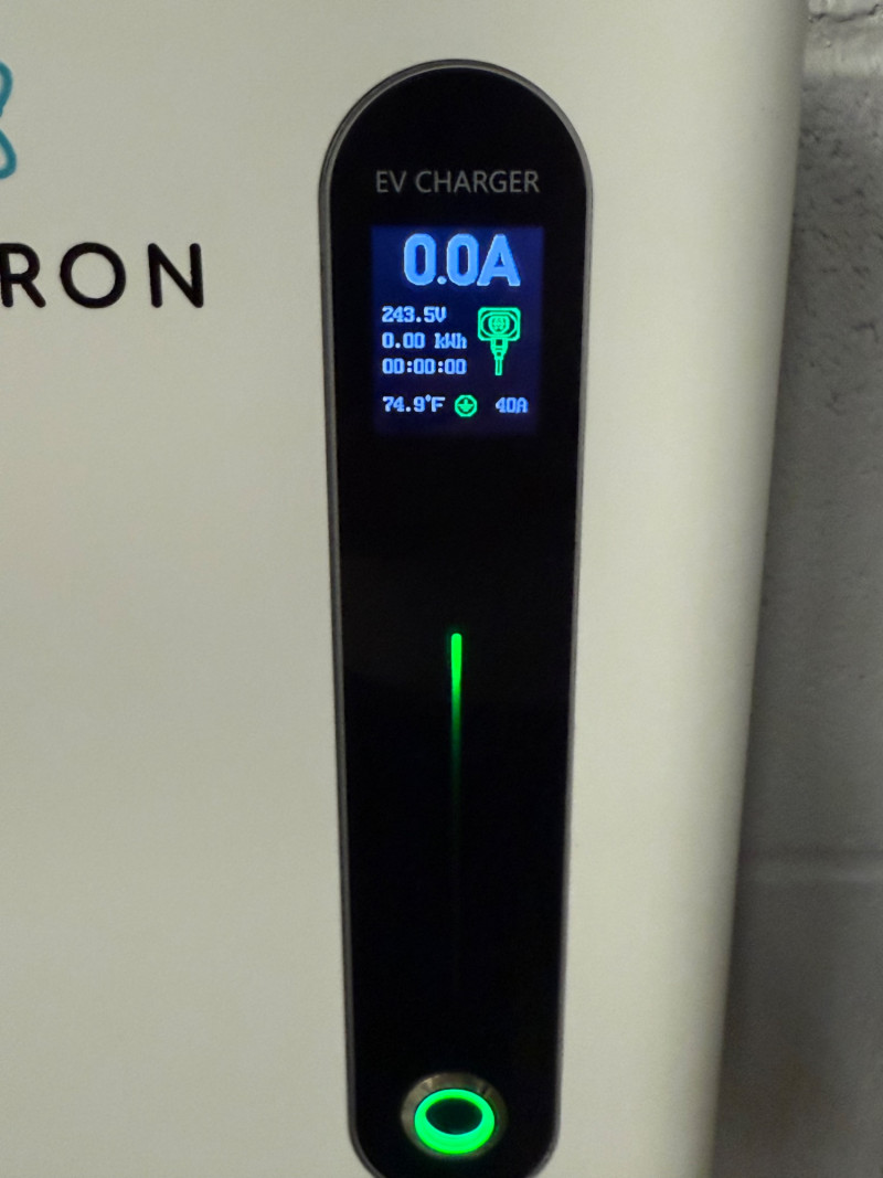 NEMA 14-50P plug Lectron EV Charger Unit 20-ft charging cable Wall mount hardware Integrated digital display Power-ready indicator light Plug-in connection to standard 240V outlet Industrial-Grade Setup: Mounted on white-painted cinder block wall with visible conduit and outlet box User-Friendly Interface: Digital display shows amperage and readiness status Flexible Power Delivery: Adjustable amperage up to 80A for fast charging Visual Confirmation: Green LED ring confirms operational status at a glance Lectron is a trusted name in EV infrastructure—this unit is ideal for home garages, workshops, or commercial fleets The 80A capacity supports rapid charging for most EV models, including Tesla (with adapter), Rivian, Ford Lightning, and more A turnkey solution for buyers seeking reliable, high-output EV charging with clean installation aesthetics Cable Length 20 Product 8.3"D x 7"H x 3"WIncluded Components