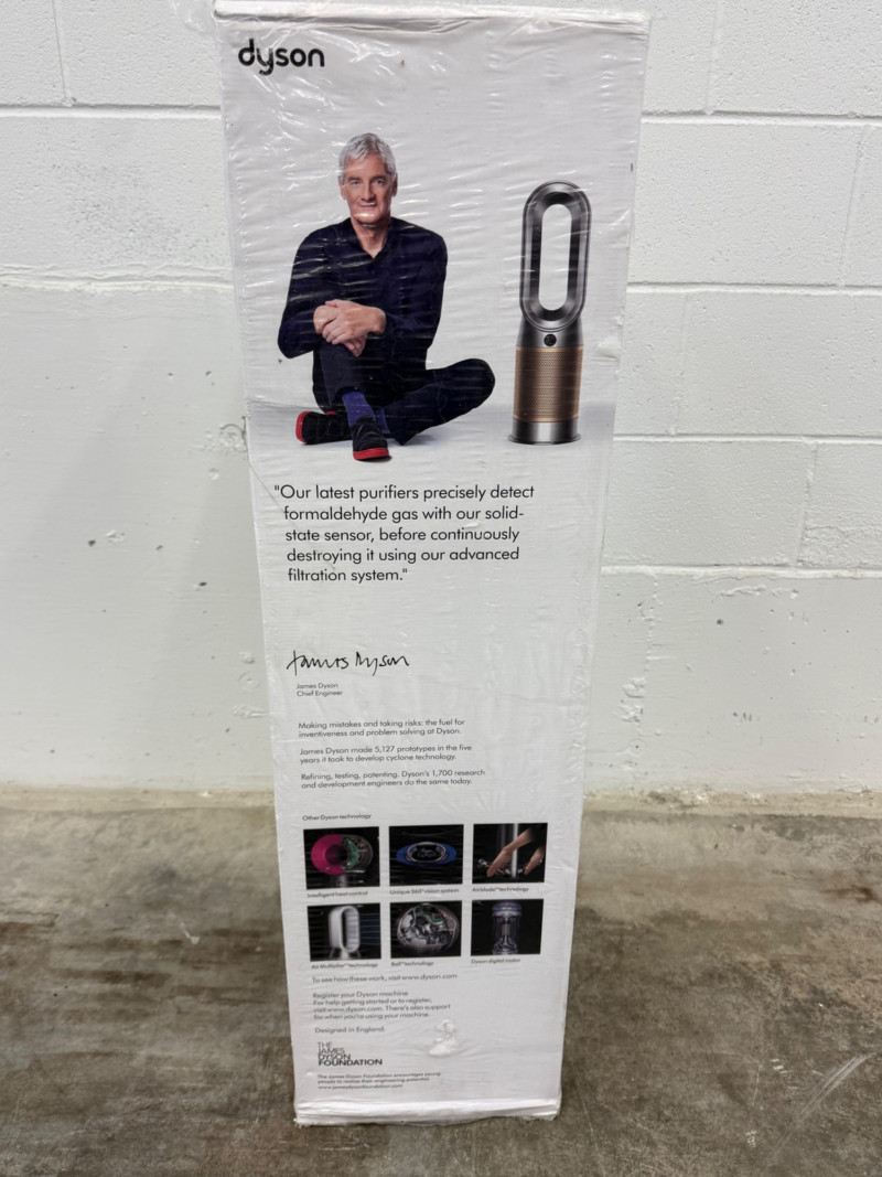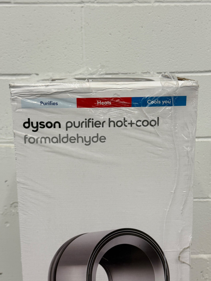 Dyson Purifier Hot+Cool Formaldehyde (Sealed in Box) Brand: Dyson Model: Purifier Hot+Cool Formaldehyde Features: Air purifier, heater, and fan in one; intelligent air quality sensors; sealed HEPA and activated carbon filtration; engineered to detect and eliminate formaldehyde. Condition: New in original sealed box Dimensions: 30.1" H x 8.7" W x 8.4" D (approx.) Retail Value: $750–$800