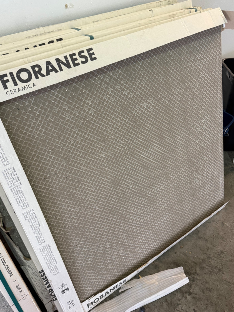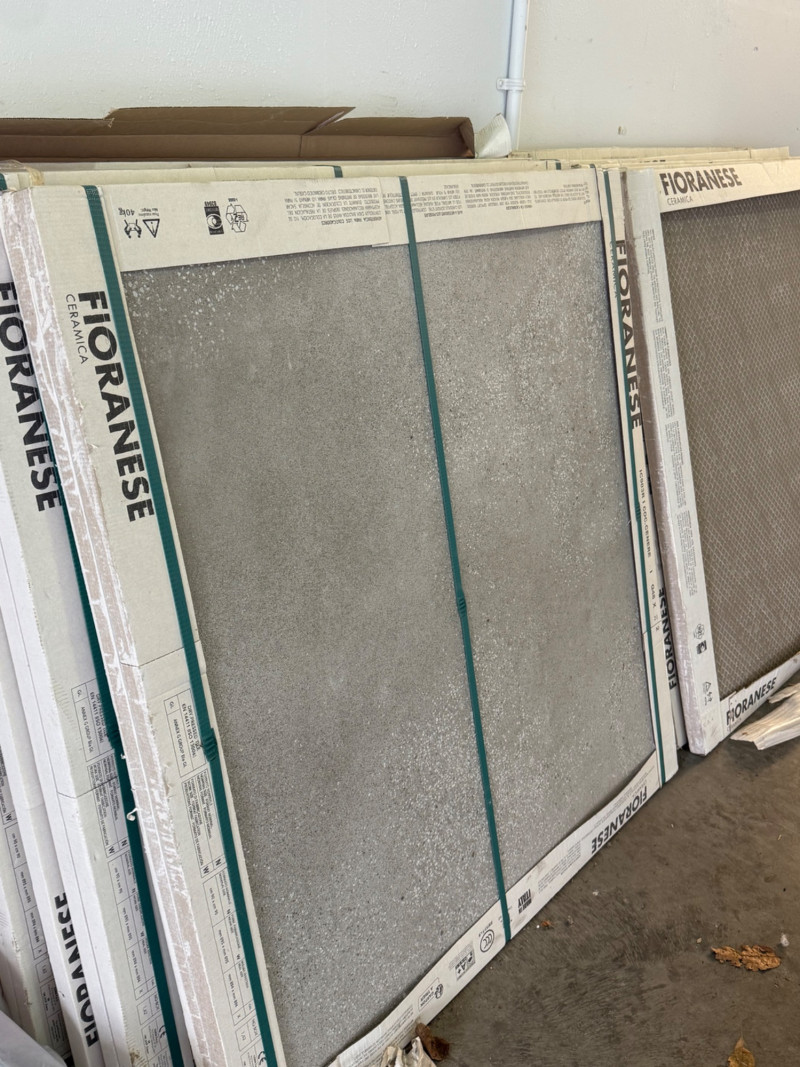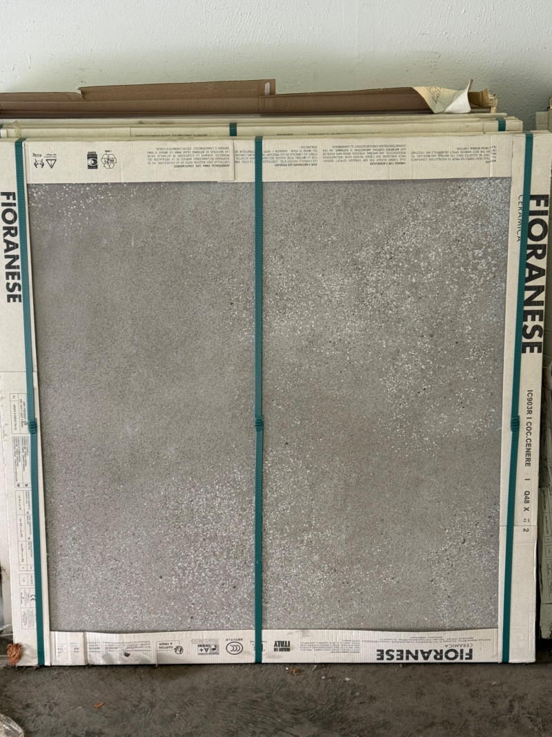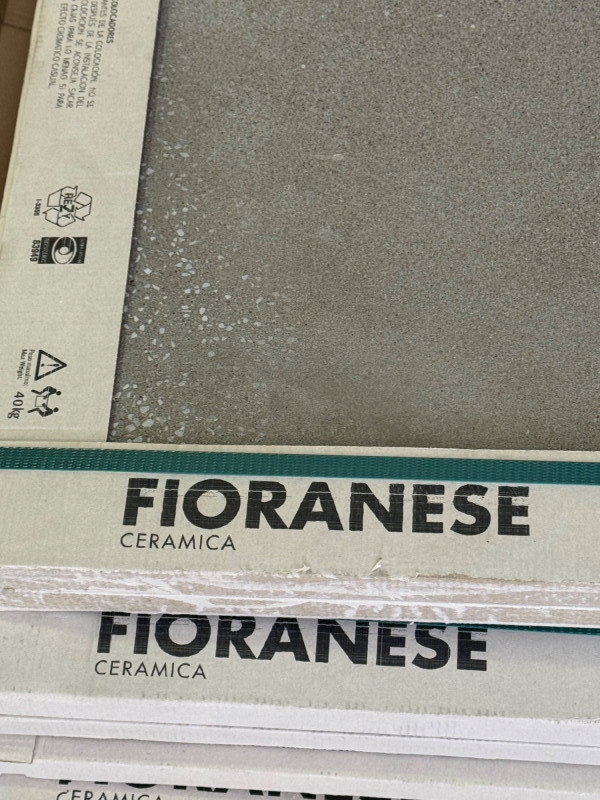Fioranese Ceramica – Large Format Porcelain Tiles (Unopened) Brand: Fioranese Ceramica Material: Dry pressed porcelain Color/Finish: Neutral stone grey with subtle texture Size per tile: 90 x 90 cm (approx. 35.4" x 35.4") Total count: 46 tiles (23 boxes, 2 tiles per box) Total coverage: ~400 sq. ft. Condition: New, unopened packaging Historical Note on the Brand: Value: Tiles of this size typically retail for $15–$25 per sq. ft., giving this lot an estimated retail value of $6,000–$10,000.