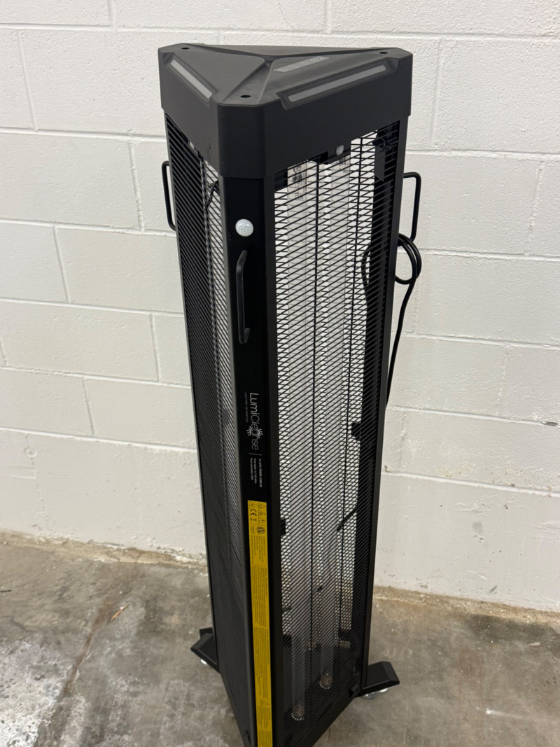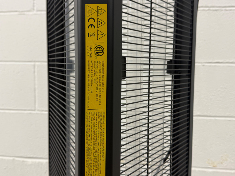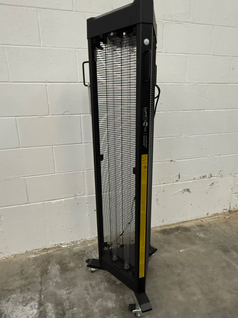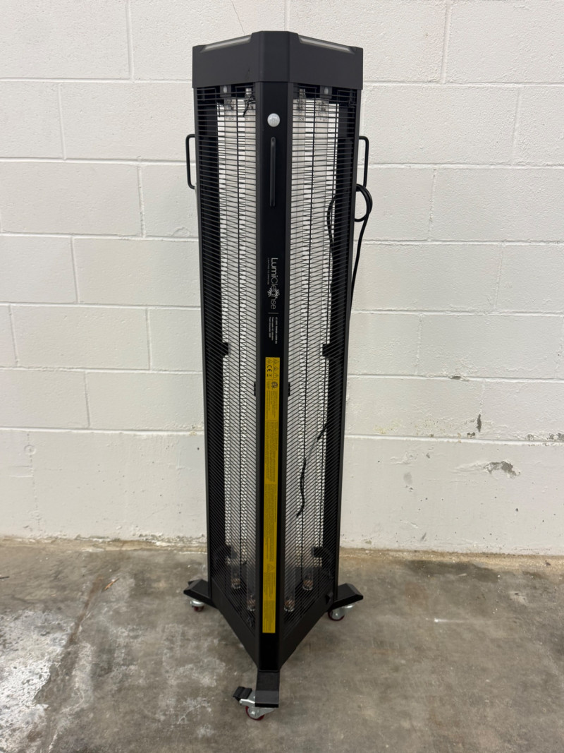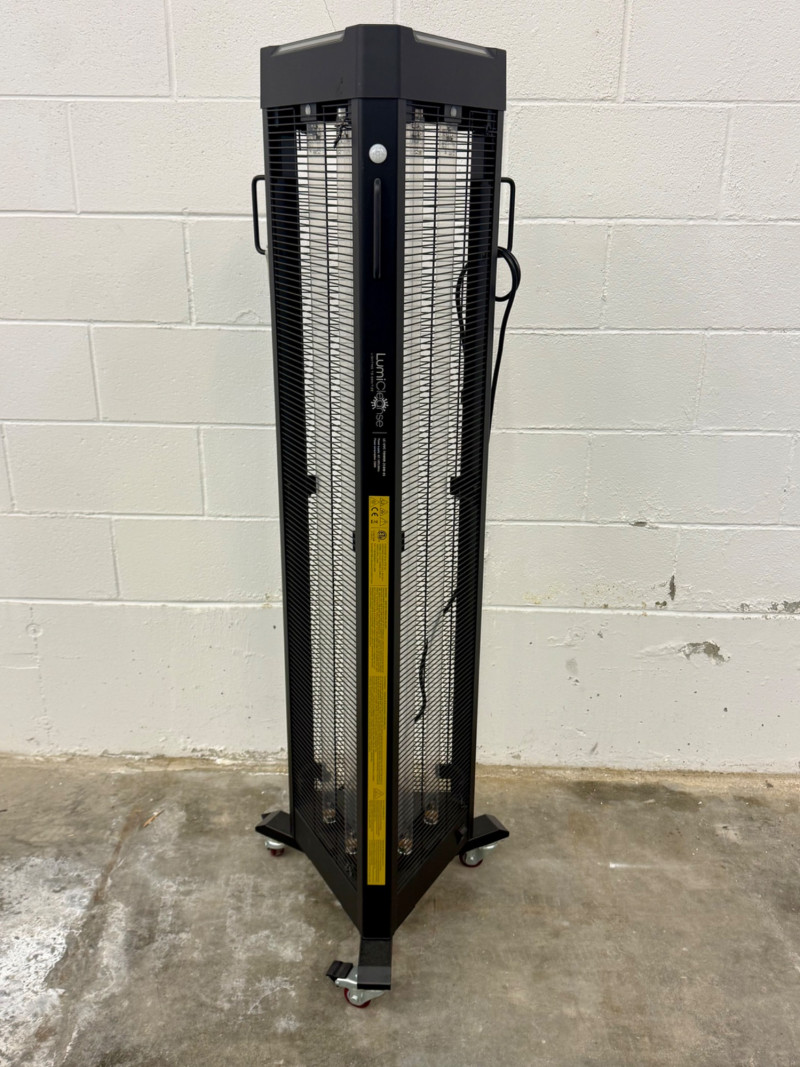 Condition: Excellent; showroom-ready with visible safety labeling and power cord LumiClese UVM216 UV-C Lamp Unit Vertical tower design Protective metal grill Mounted on mobile base with casters Integrated power cord Safety Labeling & Controls Yellow caution label Front display for operational status Industrial Styling: Matte black finish with utilitarian form Mobile Functionality: Casters and handles allow easy repositioning across rooms or zones High-Intensity UV-C Output: Designed for sterilizing surfaces and air in high-traffic or sensitive environments Ideal for medical offices, gyms, warehouses, or any space requiring high-level disinfection The UVM216 model is known for its powerful UV-C output and ease of mobility A rare opportunity to acquire a commercial-grade sterilization unit with clean presentation and full functionalityIncluded Components