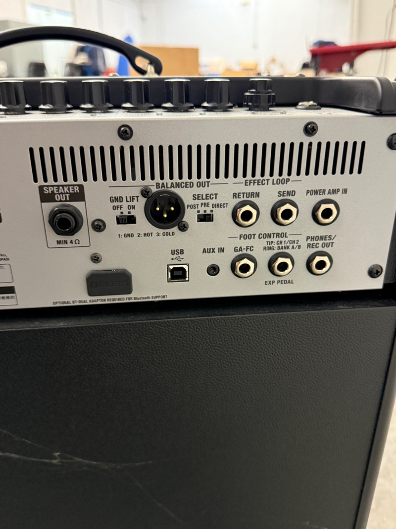 Speaker Configuration: Dual 10" custom woofers Power Output: 160 watts (Class D) Tone Settings: Three amp voicings (Vintage, Flat, Modern) Effects: Built-in BOSS effects including compression, drive, delay, and modulation Connectivity: Balanced XLR line out USB for direct recording Aux input and headphone jack Portability: Top-mounted handle for easy transport Construction: Rugged cabinet with stage-ready durability BOSS Katana-210 Bass Combo Amp Power cable Integrated control panel with tone shaping and effect toggles Features & Specs