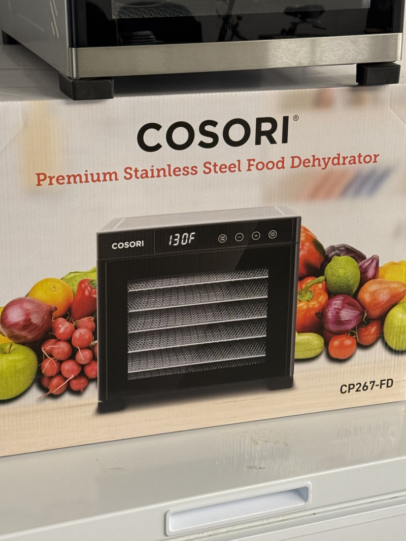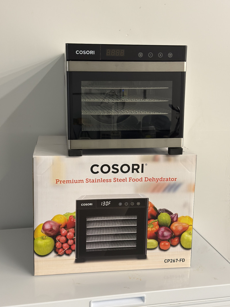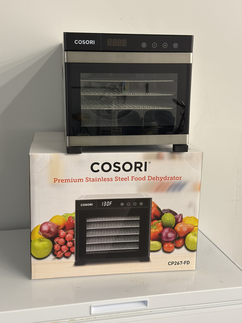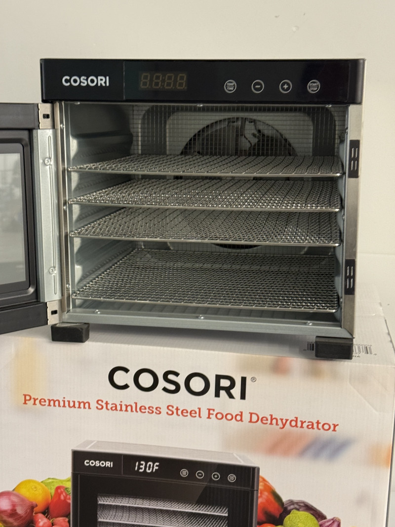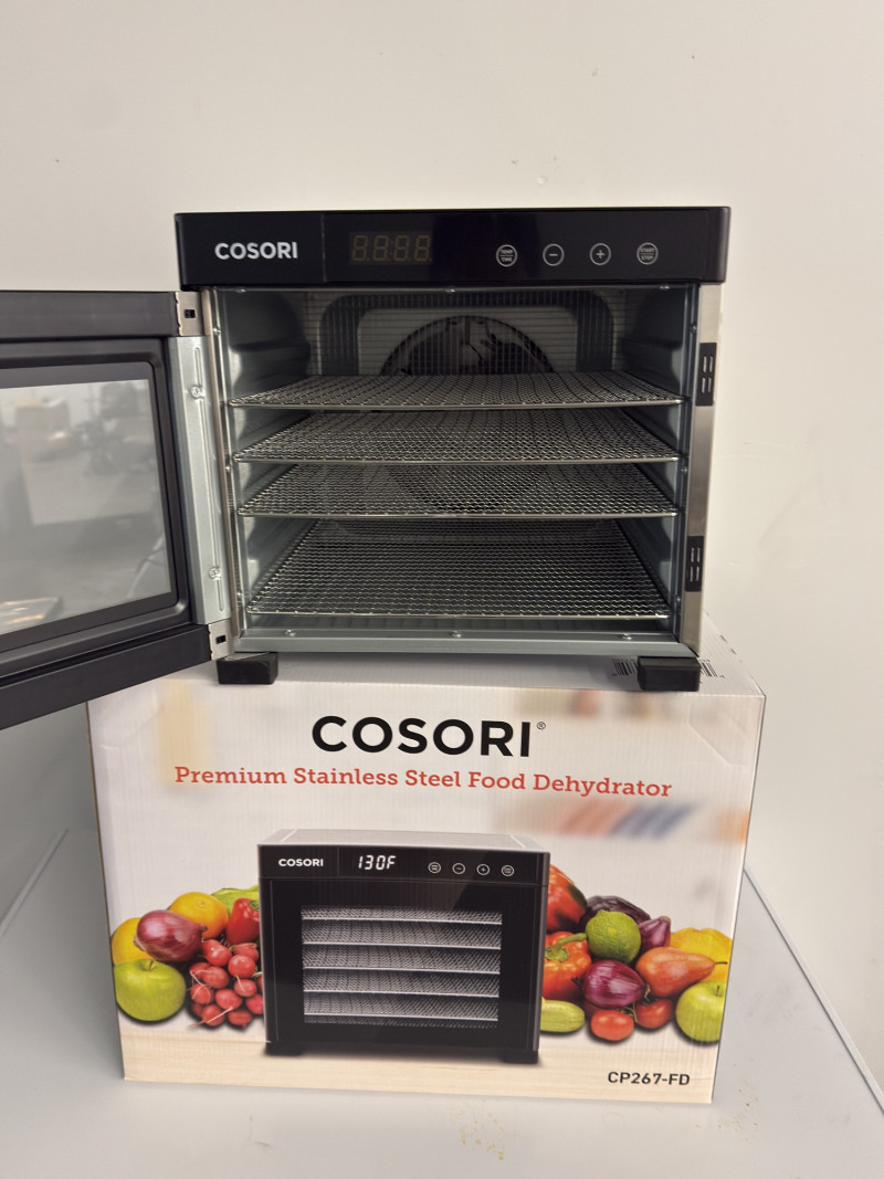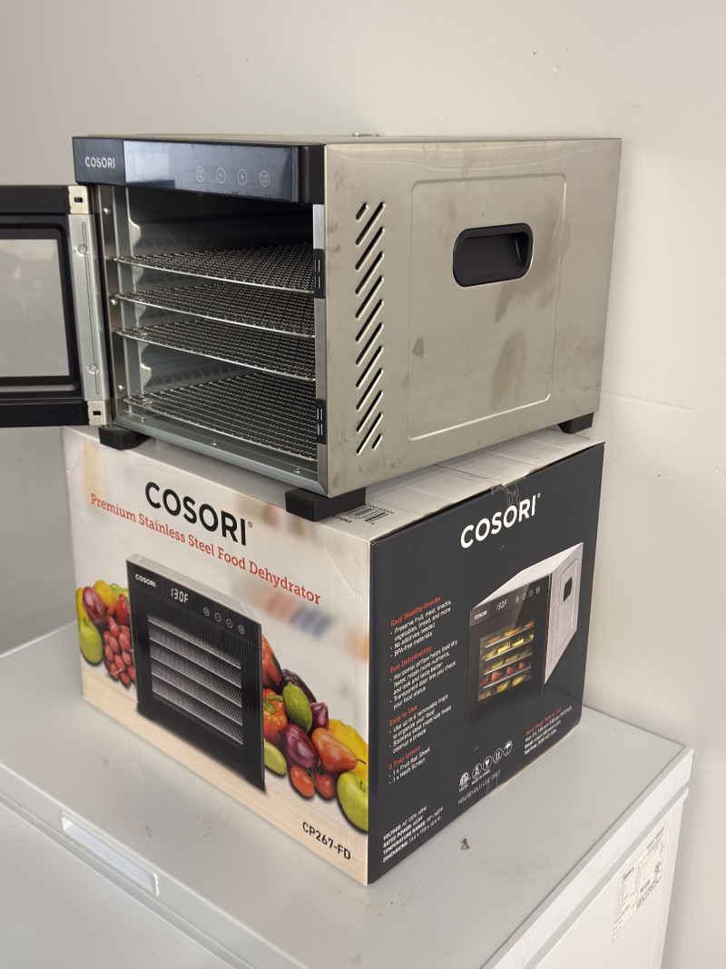 Set of two high-quality Cosori CP267-FD Premium Stainless Steel Food Dehydrators — perfect for healthy snacks, meal prep, or preserving your garden harvest. 1 Brand New, Unopened in Box 1 Gently Used, Opened Features include: Stainless steel body with sleek digital control panel Adjustable temperature range (95°F–165°F) Digital timer up to 48 hours Quiet rear-mounted fan and air circulation for even drying Dishwasher-safe stainless steel trays Condition: One unit is brand new in sealed box, the other is in excellent used condition with minimal wear. Measurements (Each Unit):