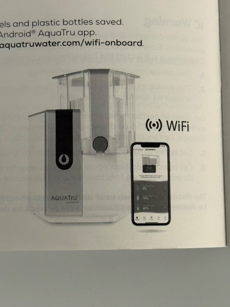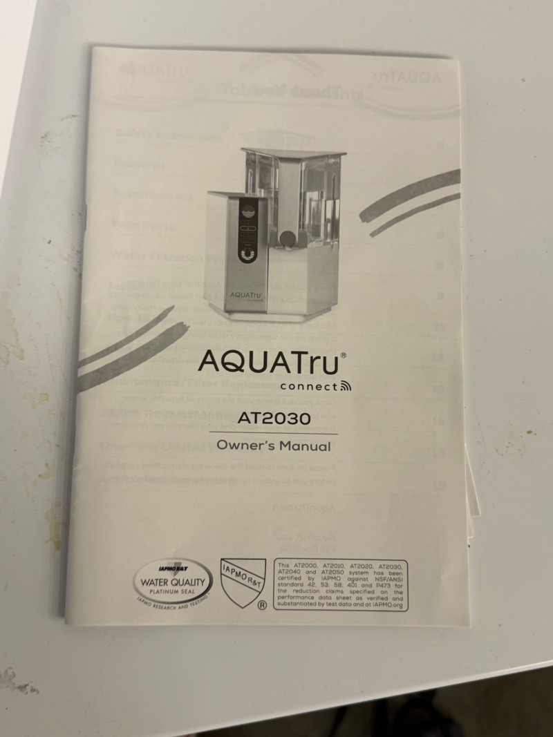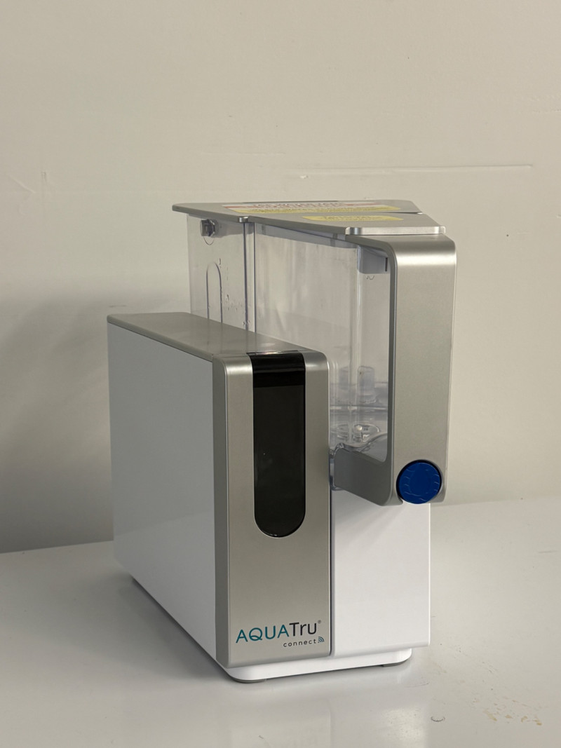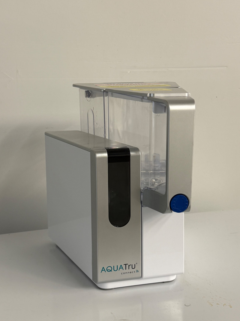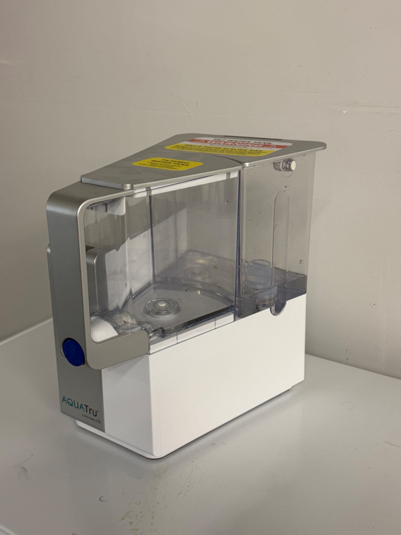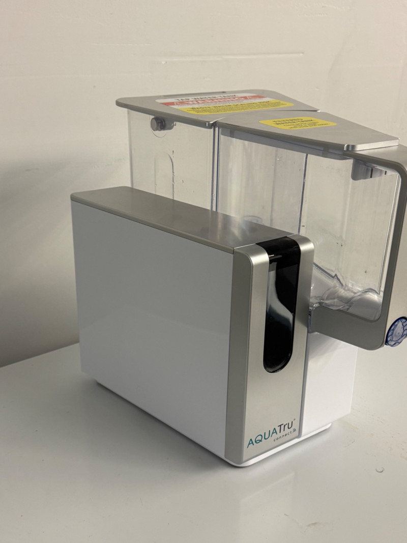 Enjoy ultra-pure drinking water at home with the AquaTru Connect Reverse Osmosis System — a countertop filtration unit designed to remove contaminants and deliver clean, great-tasting water. This model features Wi-Fi connectivity for filter change alerts and water tracking, along with AquaTru’s 4-stage reverse osmosis filtration. Condition: Unit powers on, but may require a new power cord/wire Needs cleaning and possible replacement of filters and/or accessories Sold as-is Measurements: